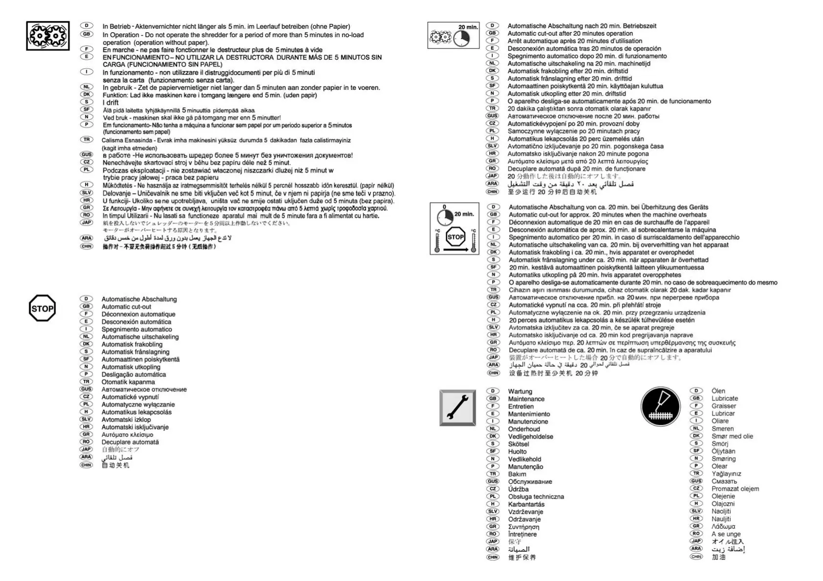 Dahle 30304 - Operational Features and Limits; No-Load Operation Time; Automatic Cut-off Functions; Maintenance and Lubrication
