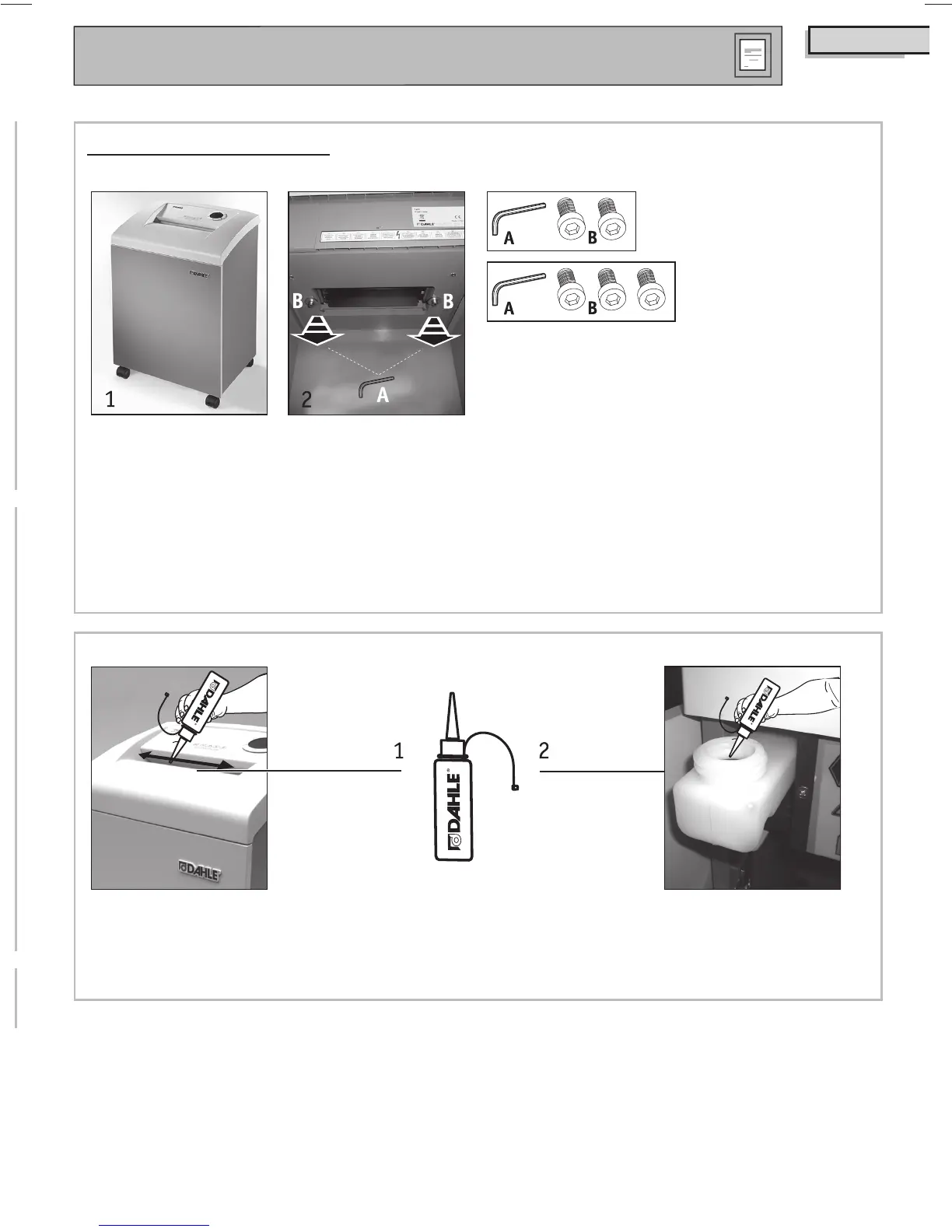 1. Oil the shredding rollers using DAHLE document shredder oil (P5, P6 and P7 cross-cut shredding