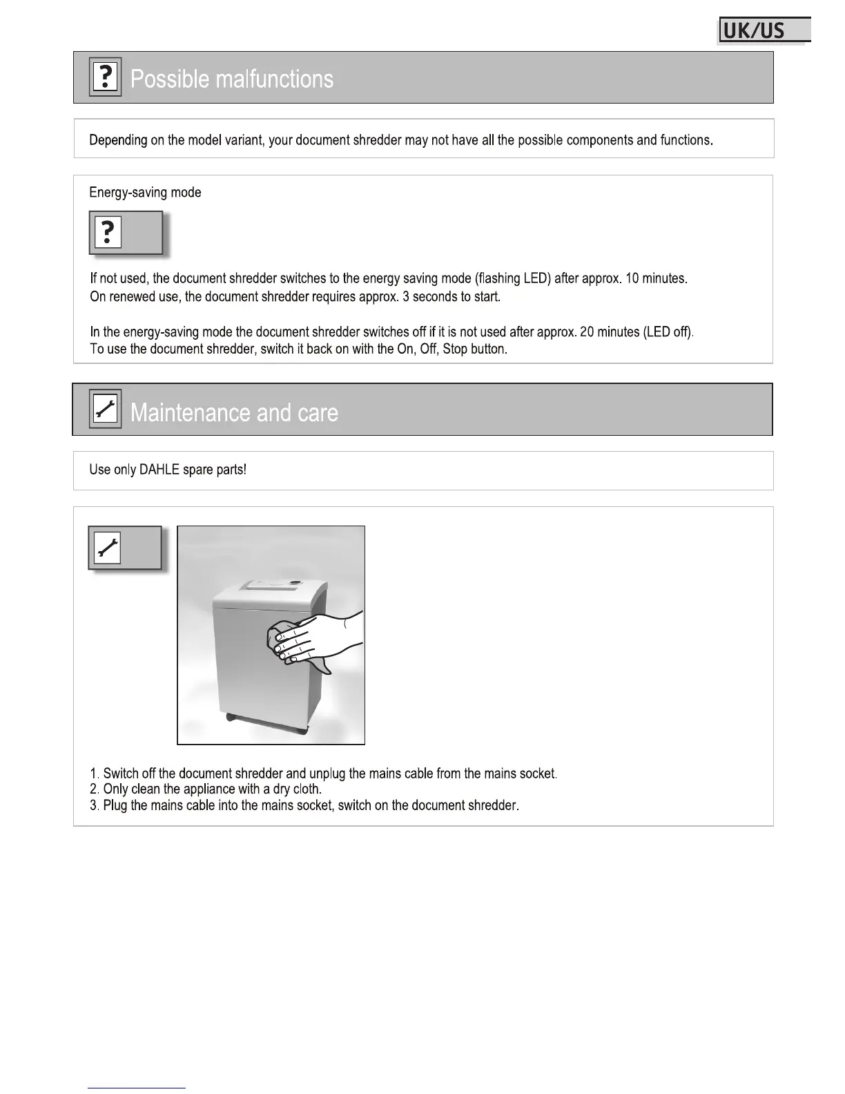 Dahle 41314 - Energy-saving Mode Behavior; Maintenance and Care; Cleaning the Appliance