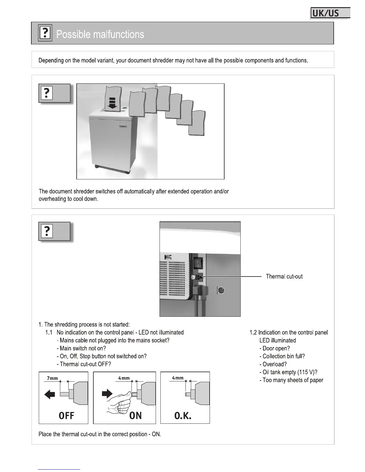 Dahle 41422 - Troubleshooting and Maintenance; Automatic Shredder Shutdown Issues; Shredding Process Start-Up Problems