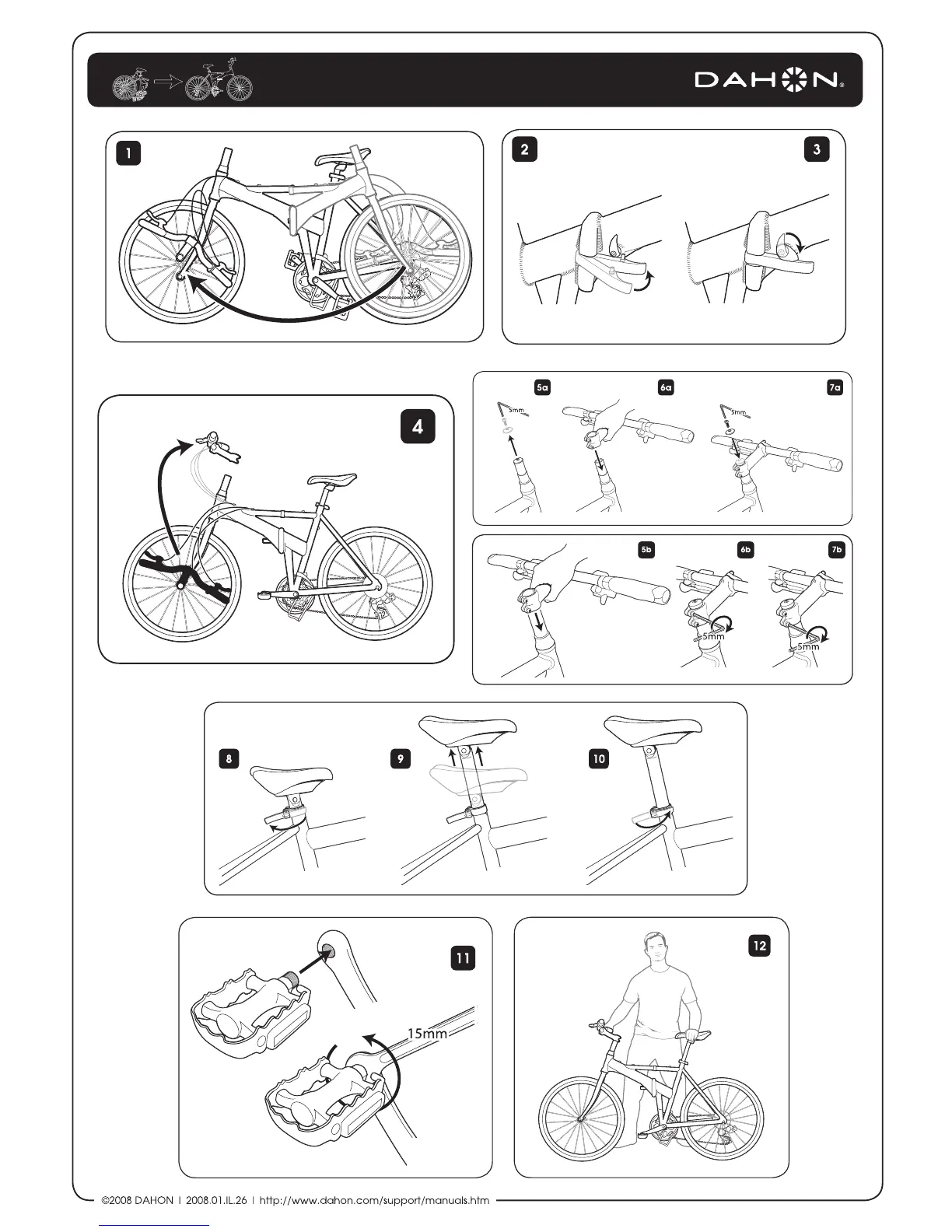 DAHON 26 INCH - 2008 - Bicycle Folding and Final Assembly; Folding Mechanism Details; Handlebar Folding and Stem; Seat Post Adjustments