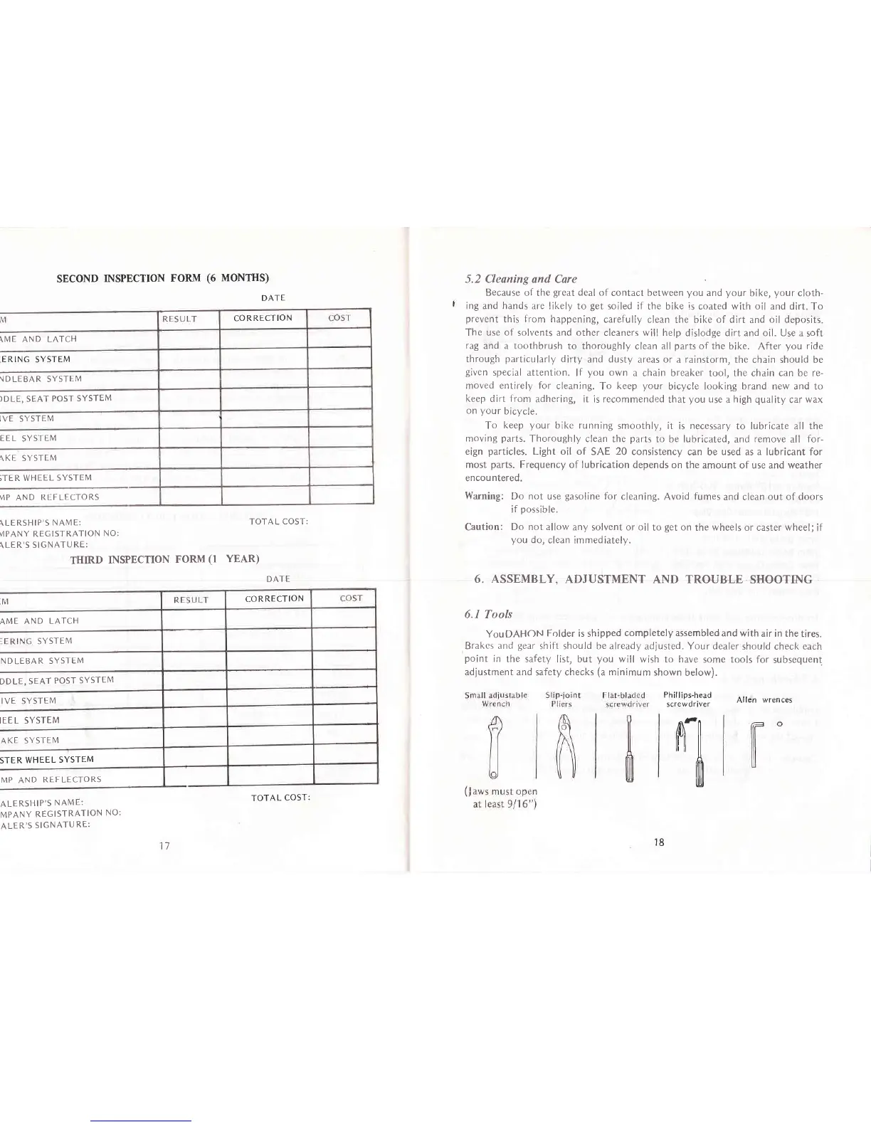 DAHON Folder 1987 - 6. Assembly, Adjustment and Trouble Shooting