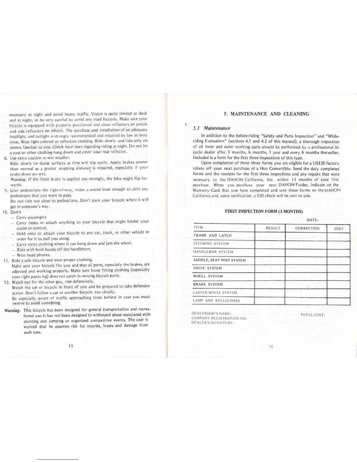 DAHON Folder 1987 - Maintenance and Cleaning