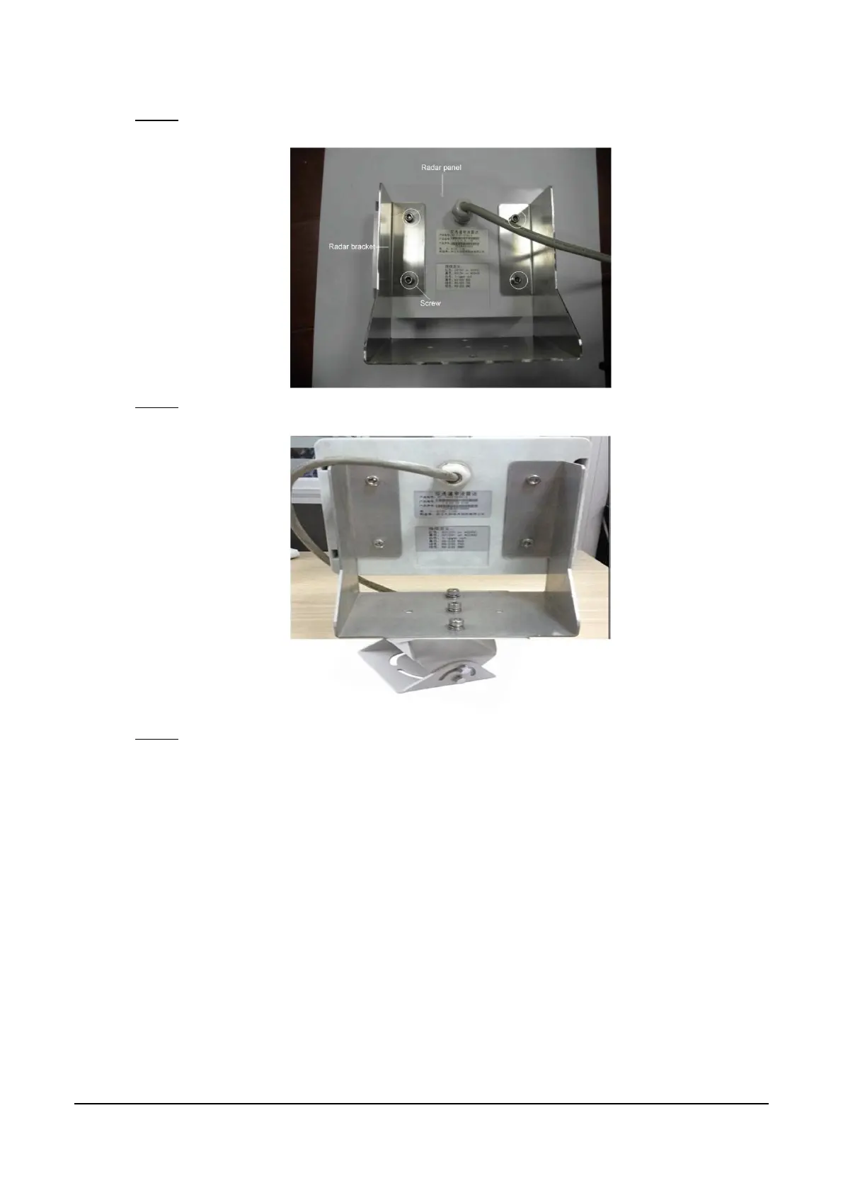 Use screws to tighten the radar panel to the radar bracket. See Figure 4-5.