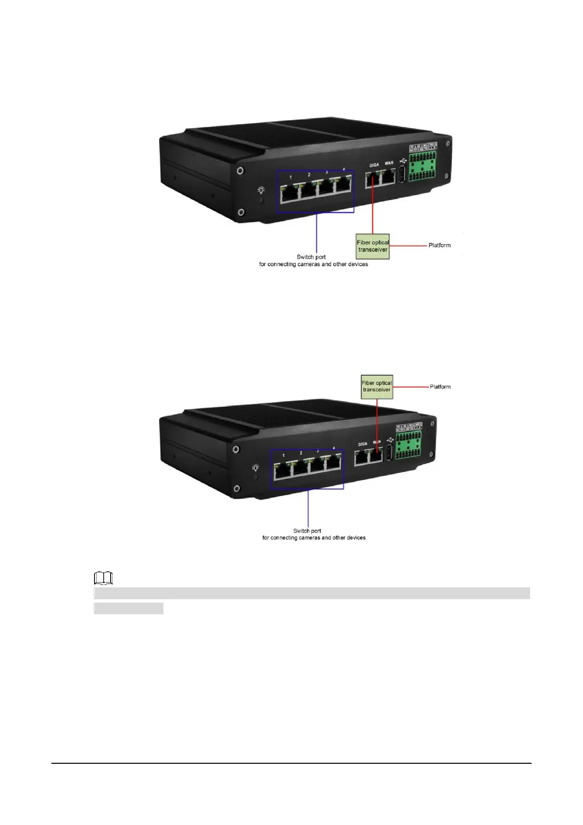 Connect the platform to GIGA port through network cable, and connect cameras to switch ports.