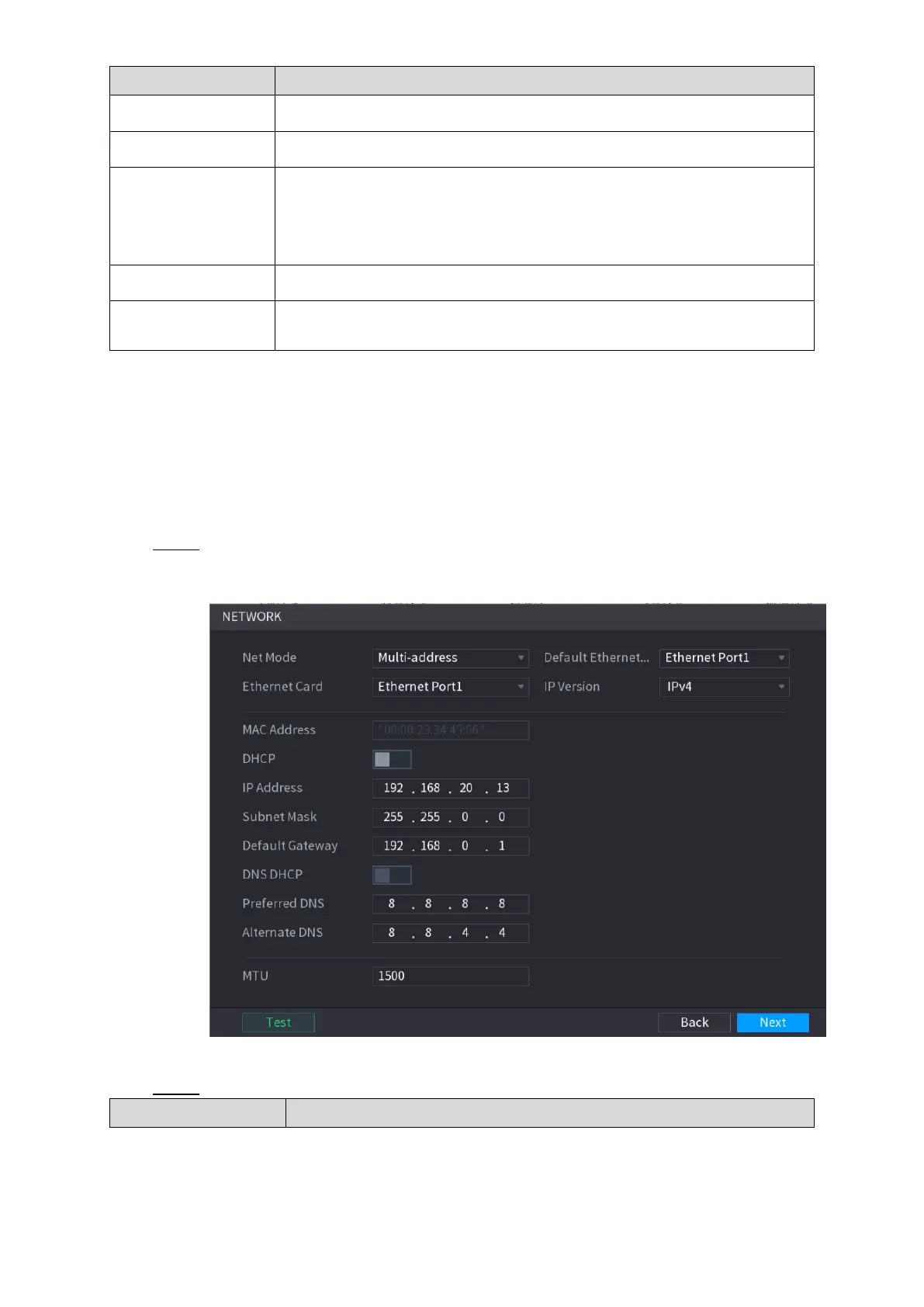 Configure the settings for network parameters. See Table 5-5. Step 2