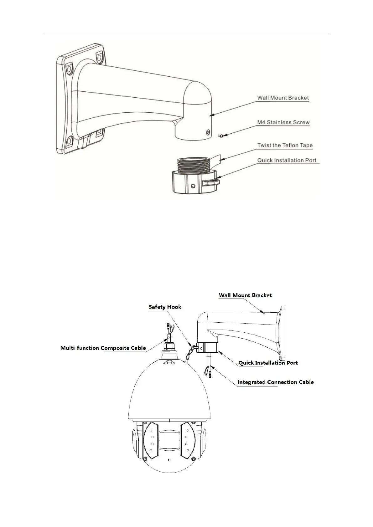 Connect the safety hook of the IR speed dome cover to the hook of the quick installation port.