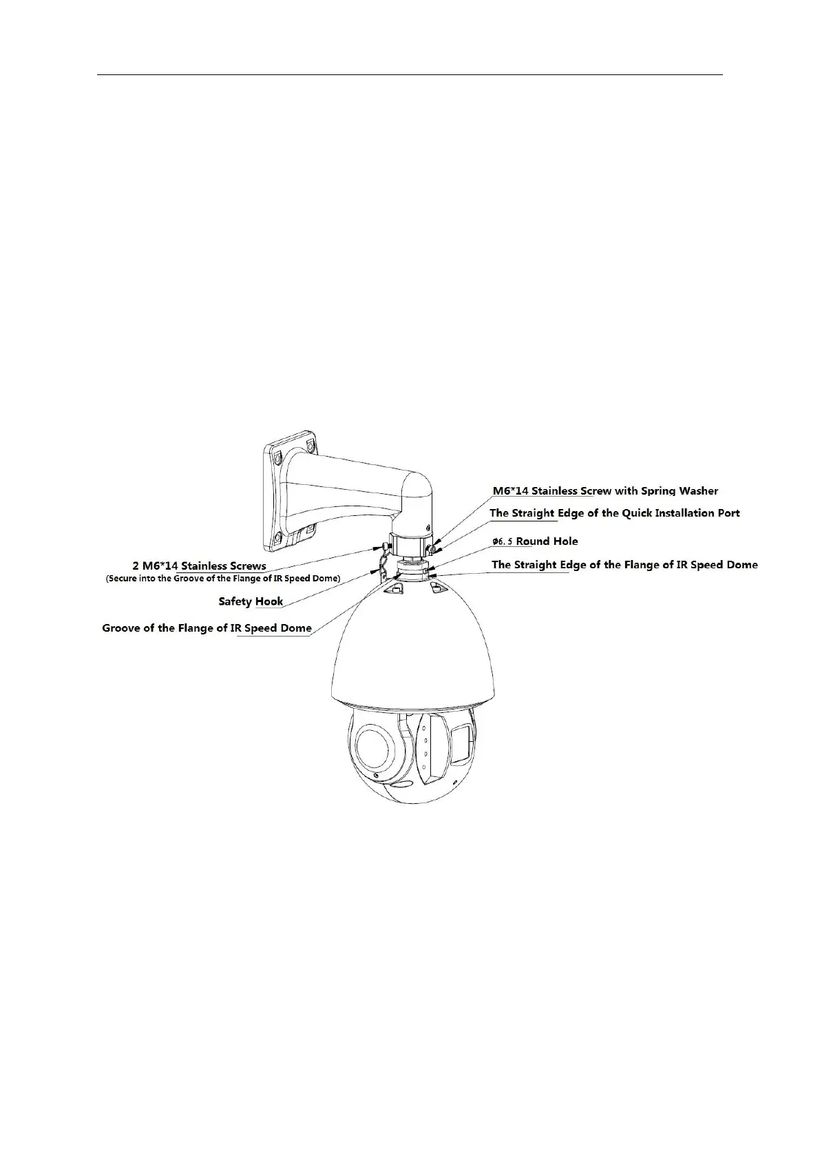 straight edge of the IR speed dome. Turn other two M6*14 stainless screws to groove of IR