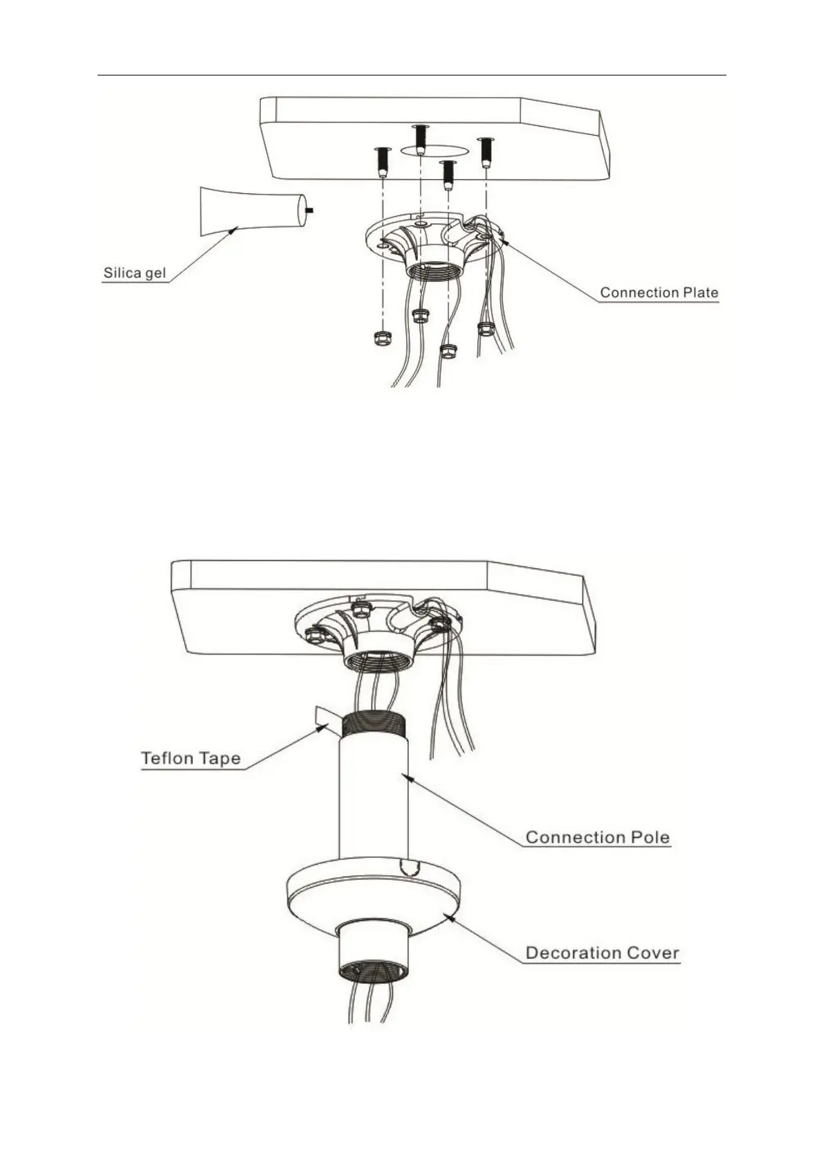 the silica gel on the surface of the connection plate and the ceiling and the cable exit.