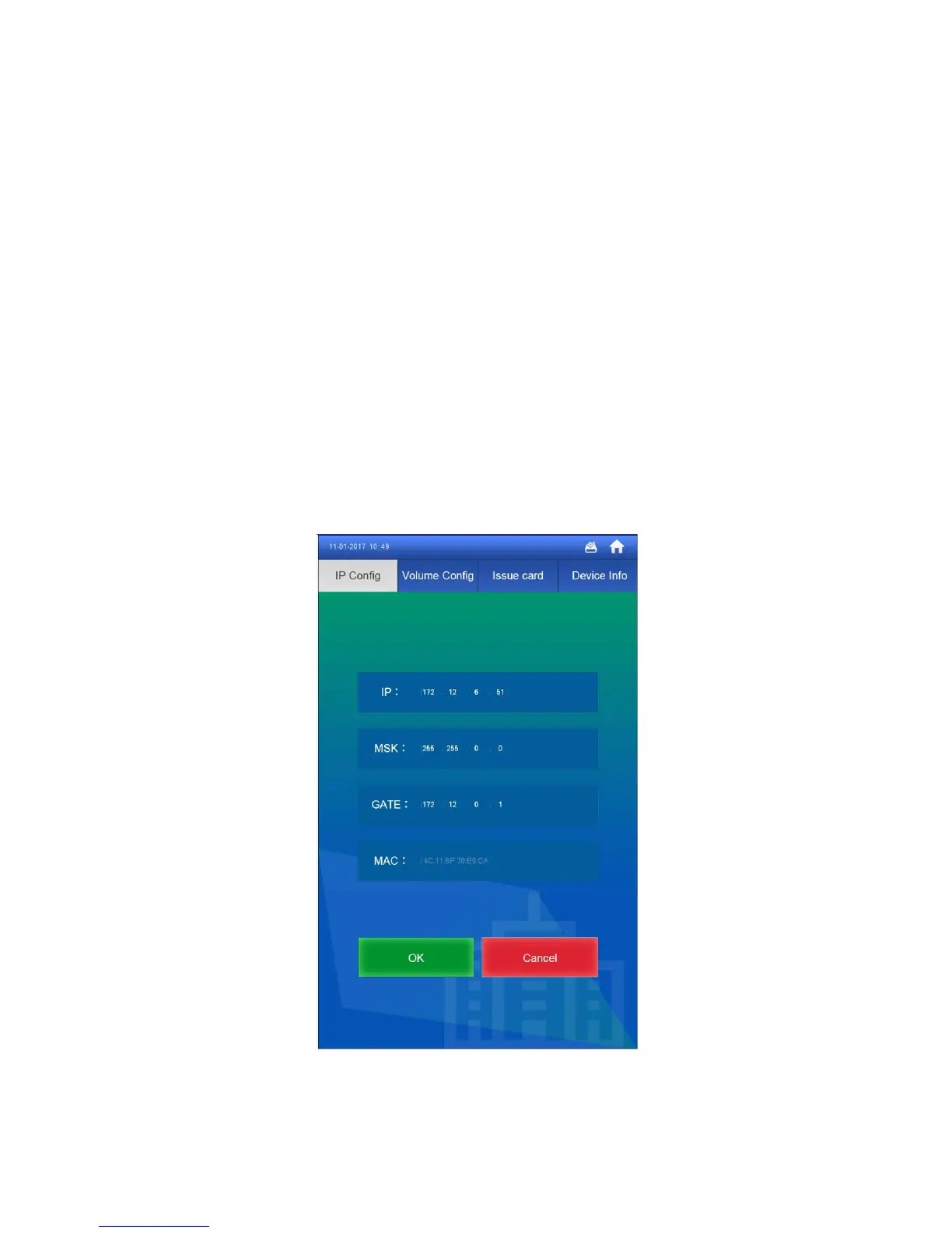In Project Setting>IP Config interface, you can set VTO IP address, subnet mask and