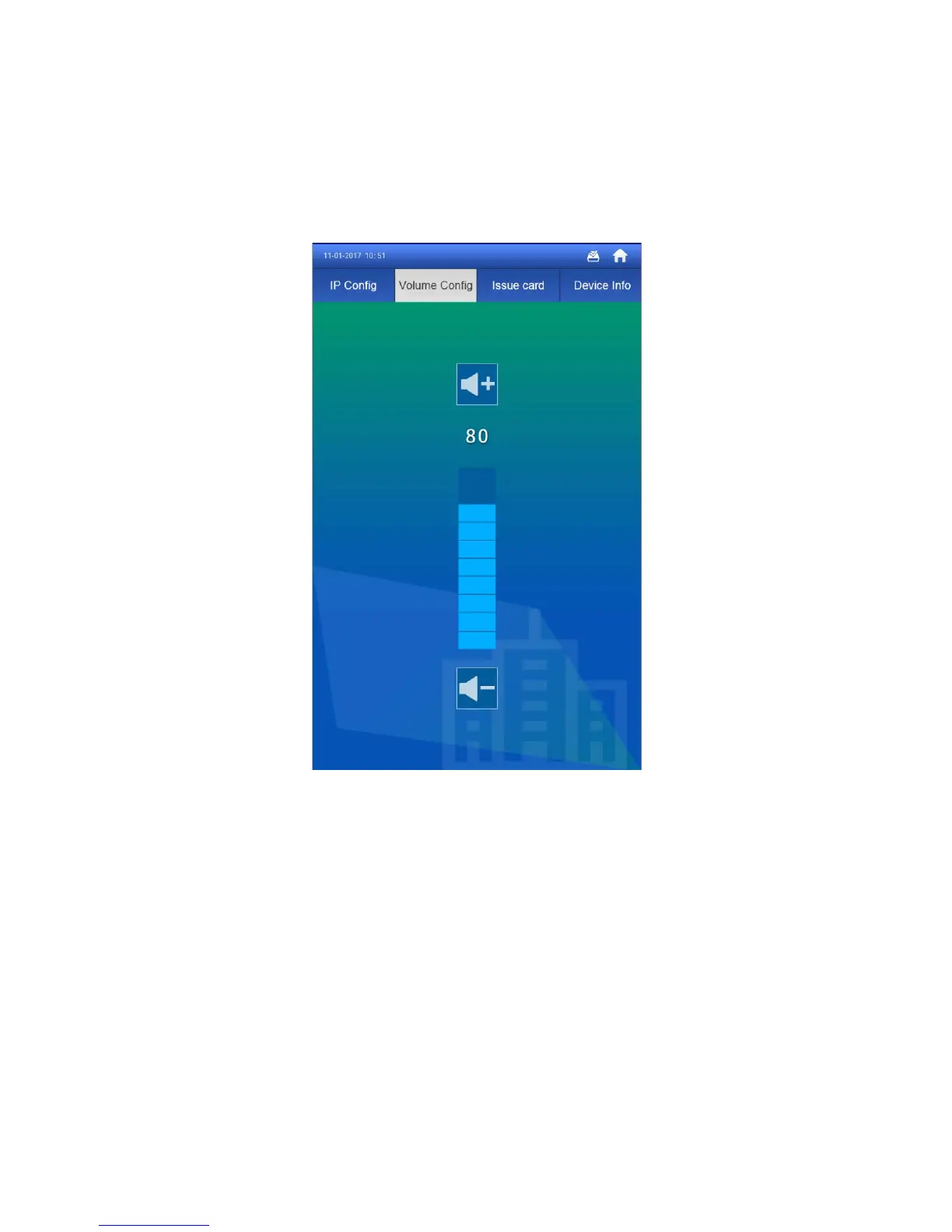 In Project Setting>Volume Config interface, you can control volume of entire VTH, incluing