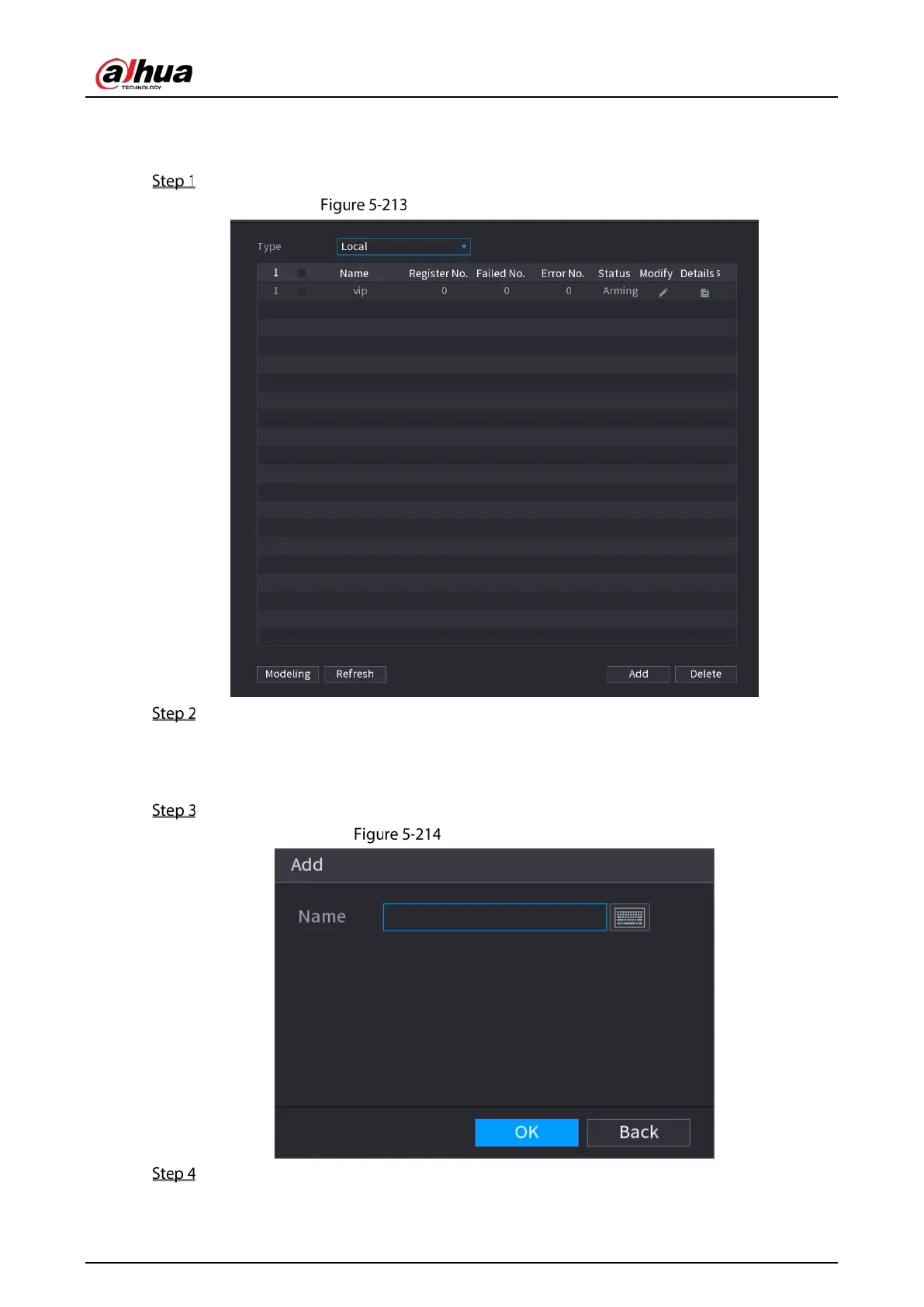 Local: Viewing the existing face databases or adding new one on the DVR.