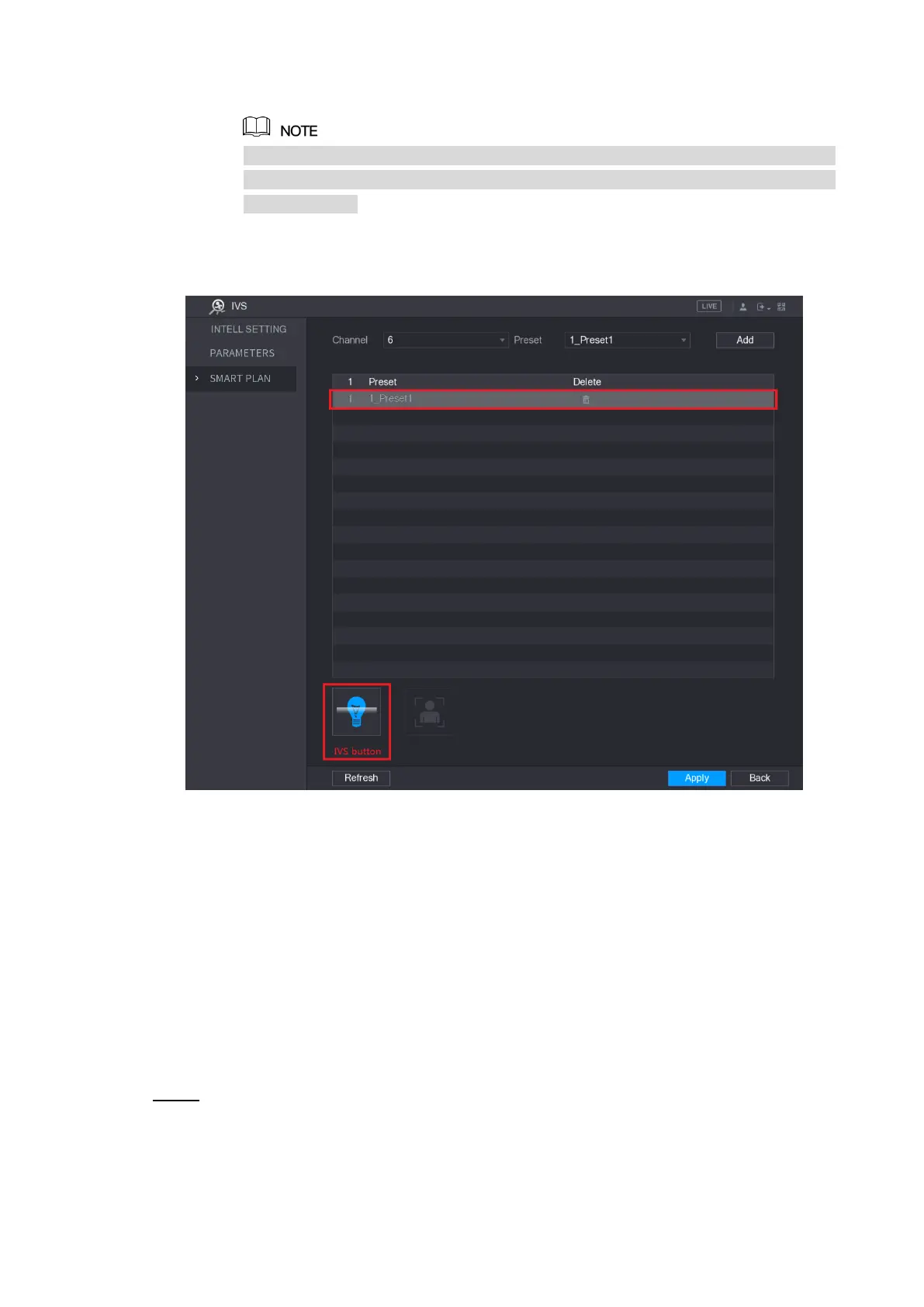 Click IVS button to enable the intelligent settings to preset 1. The buttons is 4)