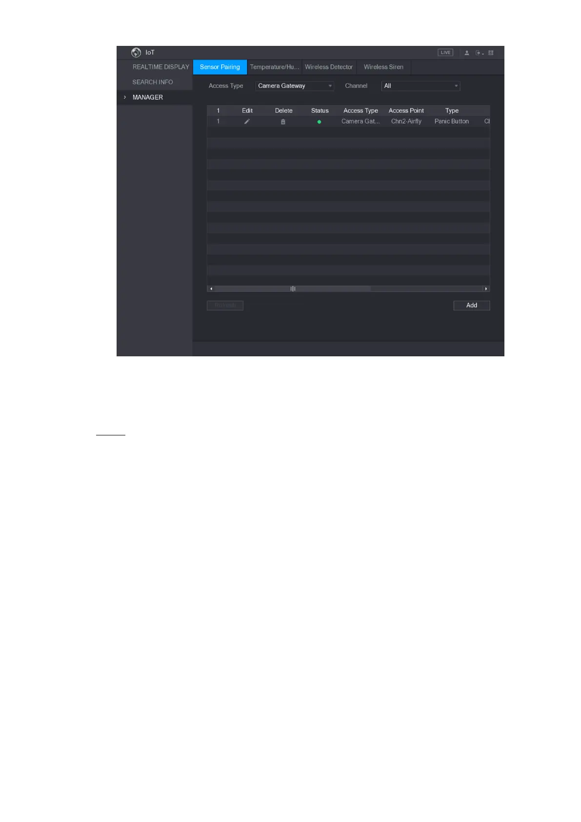 Select Main Menu > IoT > MANAGER > Wireless Detector. Step 1