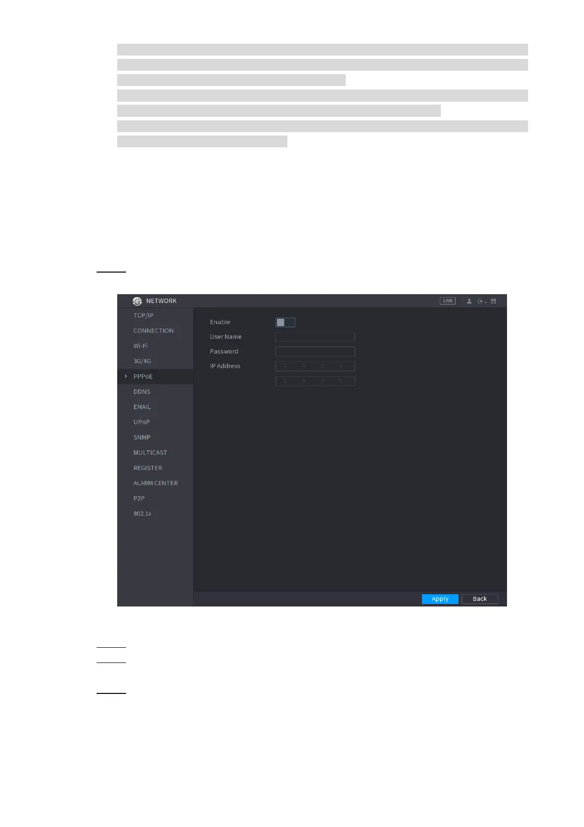 Select Main Menu > NETWORK > PPPoE. Step 1