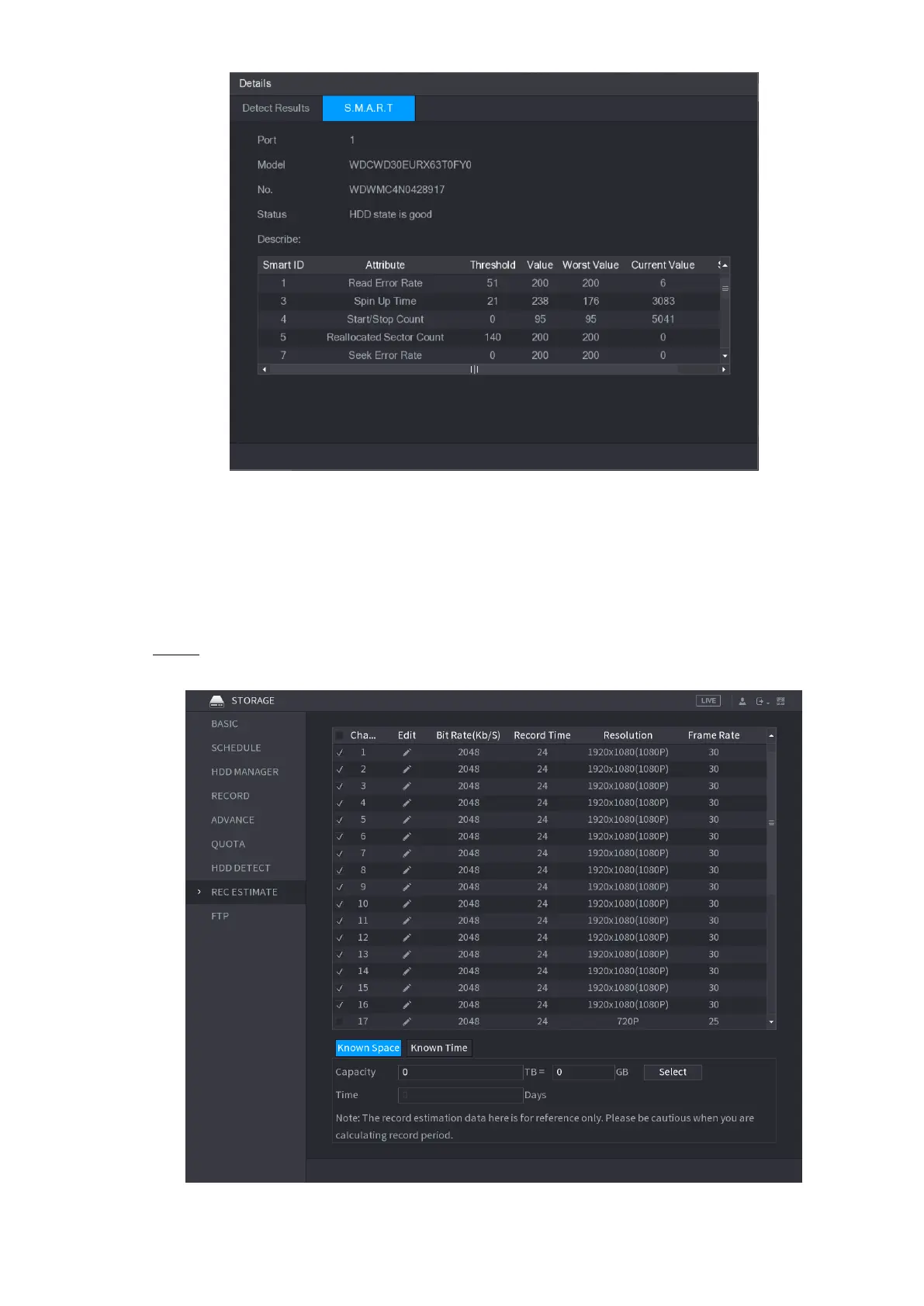 Select Main Menu > STORAGE > REC ESTIMATE. Step 1