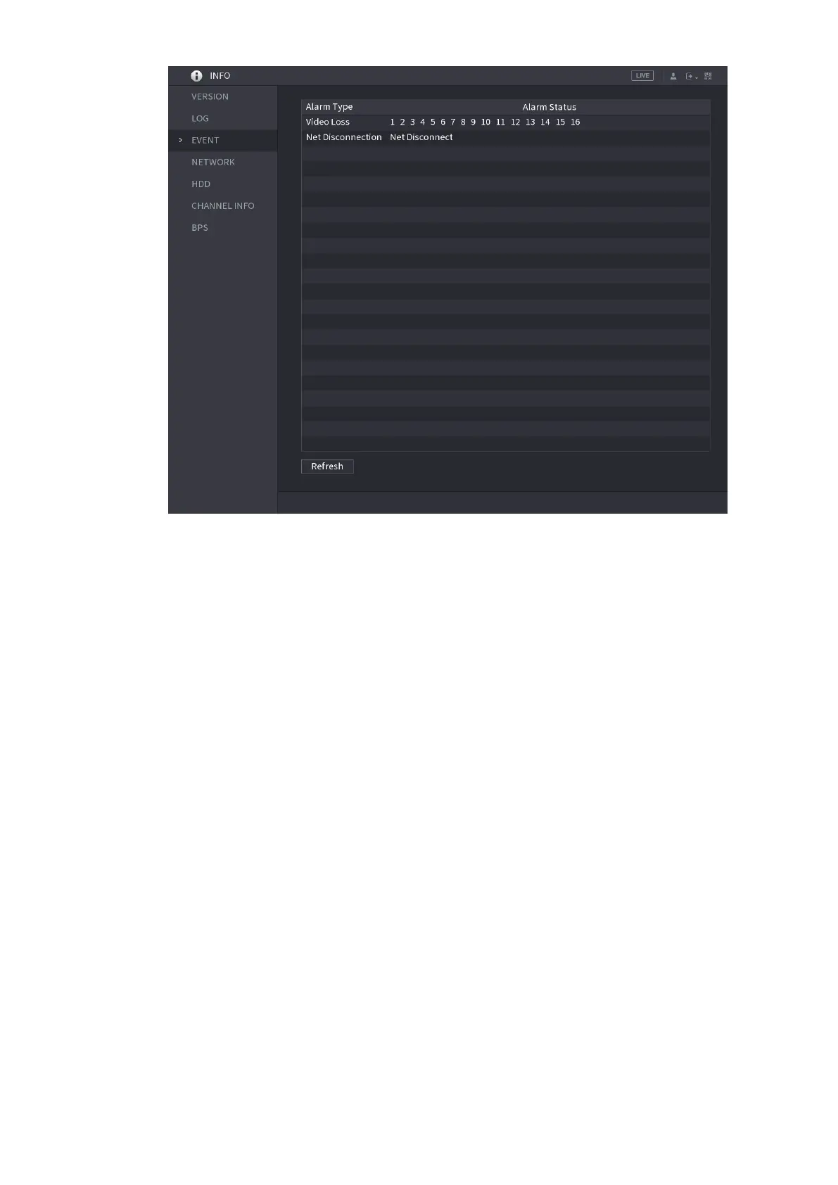 Select Main Menu > INFO > NETWORK > Online users, the Online users interface is