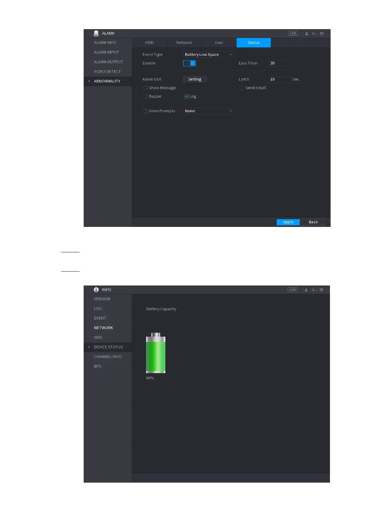 Select Battery Low Space for Event Type, tick the switch behind Enable, and then Step 2