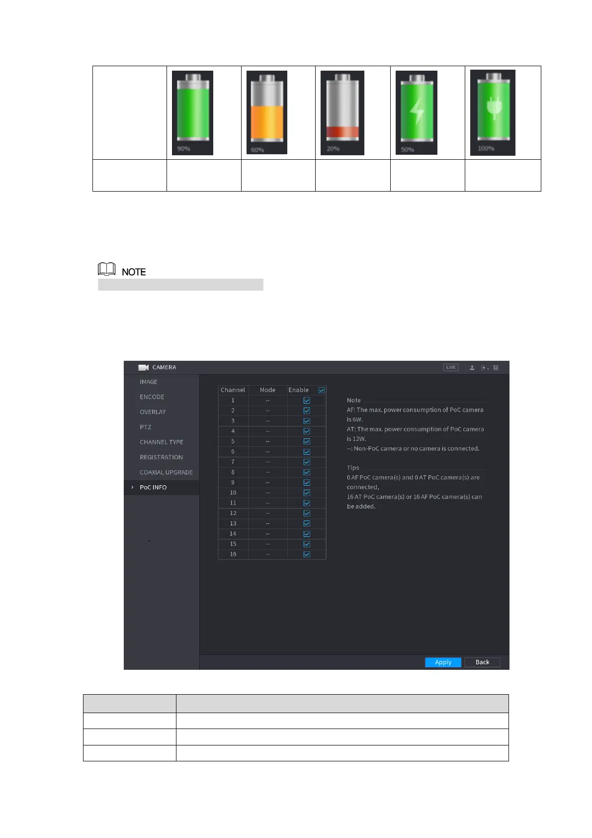 Select Main Menu > CAMERA > PoC INFO, the PoC INFO interface is displayed. See Figure