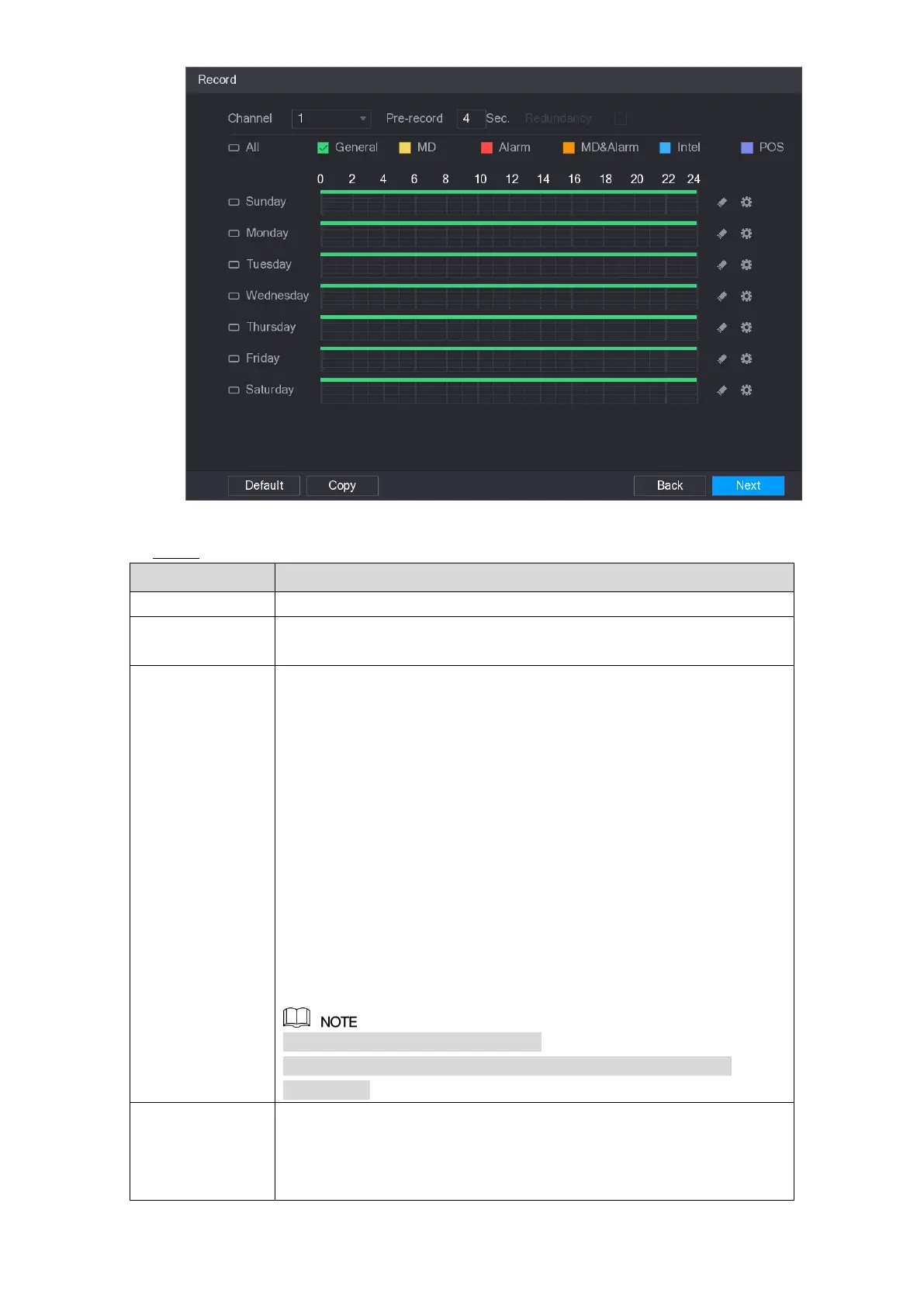 Select Main Menu > STORAGE > SCHEDUE > Record, and