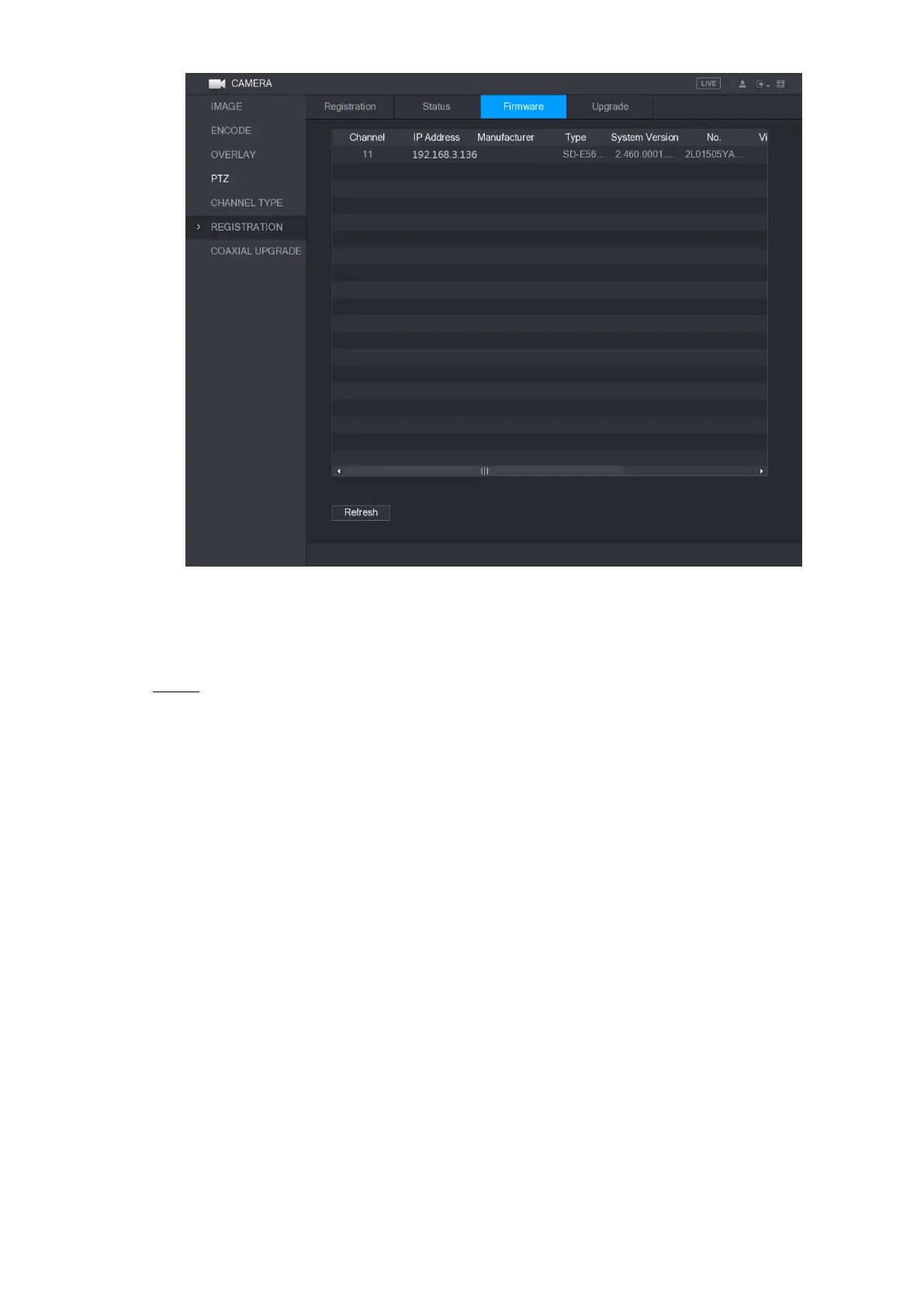 Select Main Menu > CAMERA > REGISTRATION > Upgrade. Step 1