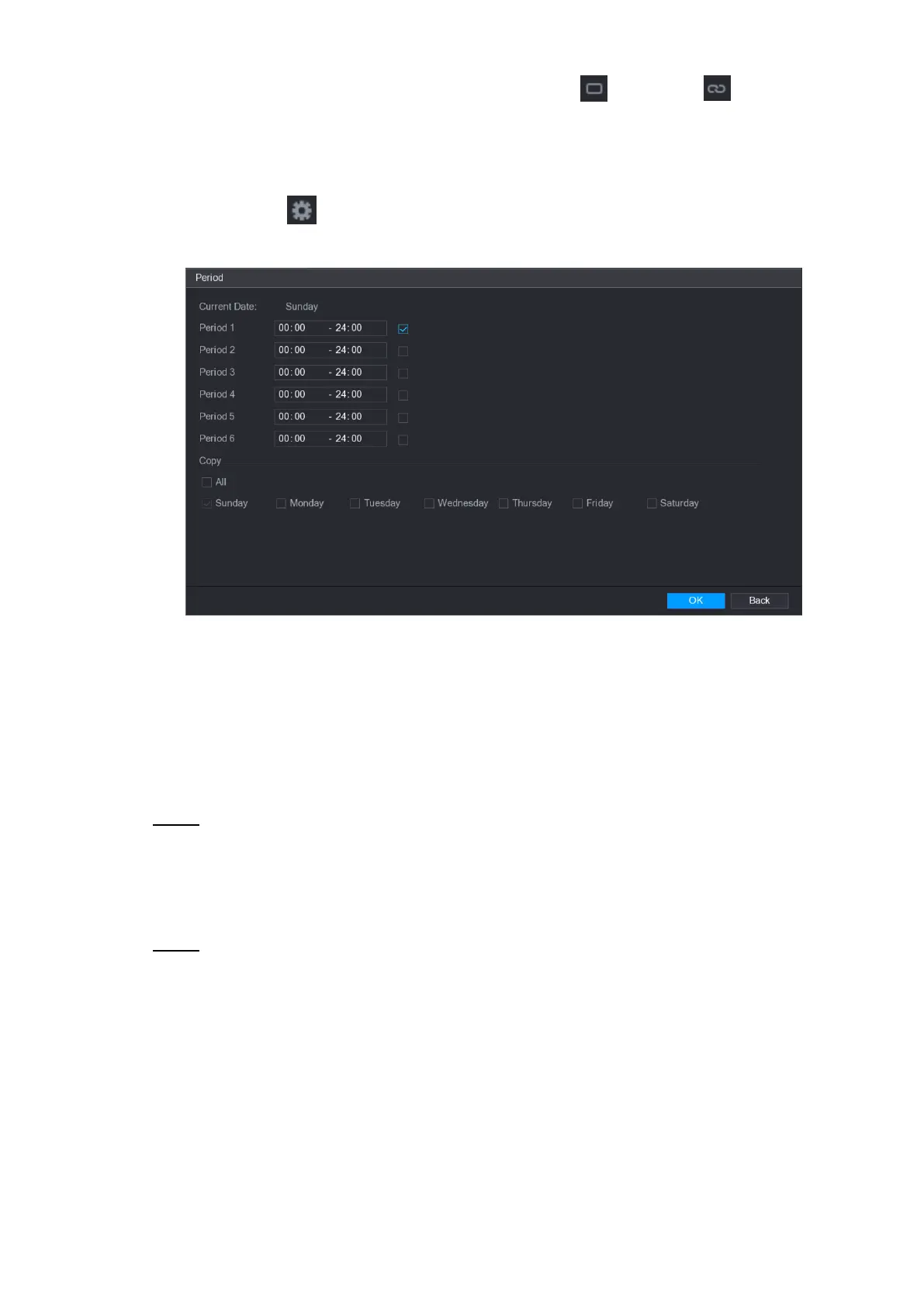Enter the time frame for the period, and then select the check box to enable the