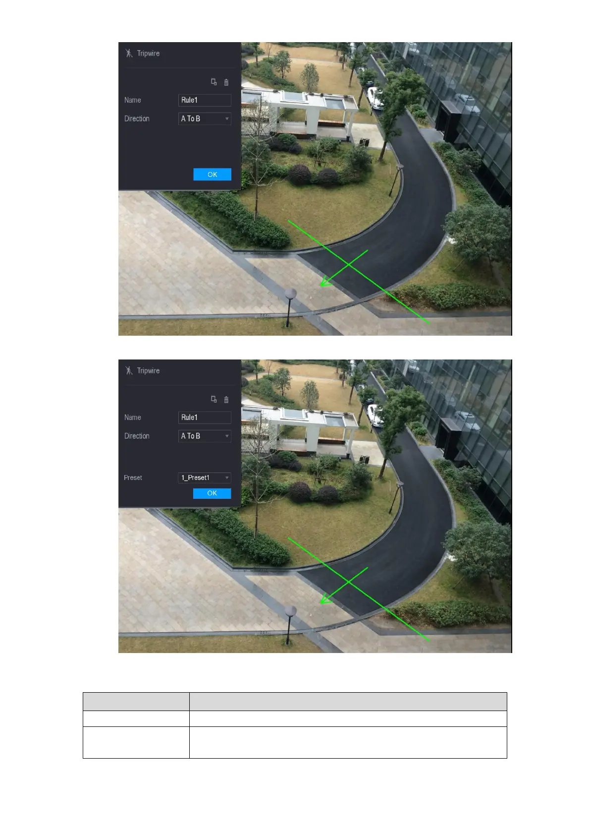 Set the direction of the tripwire. You can choose A to B (left to