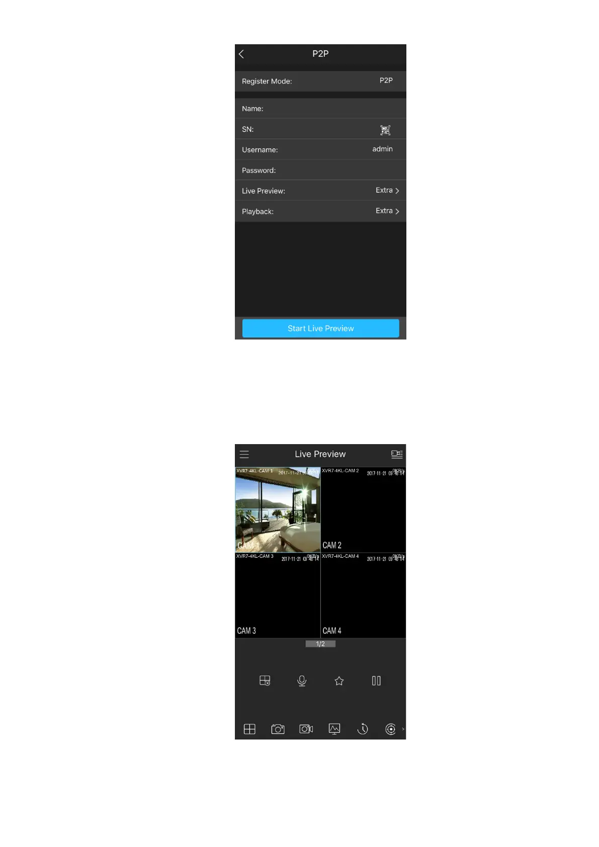 Enter a name for the DVR, the username and password, scan the QR code under 6)