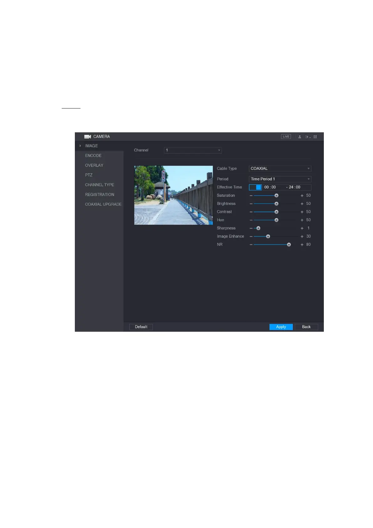 You can configure the image settings such as saturation, contrast, brightness, sharpness for