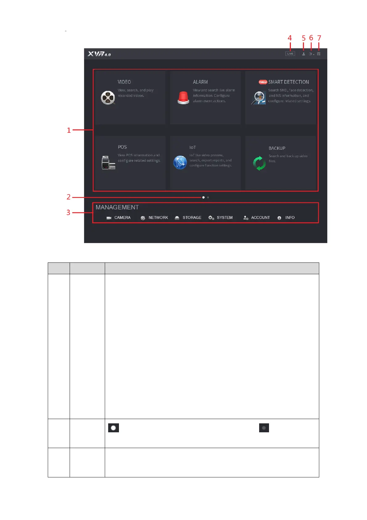 Includes six function tiles: VIDEO, ALARM, SMART DETECTION, POS,
