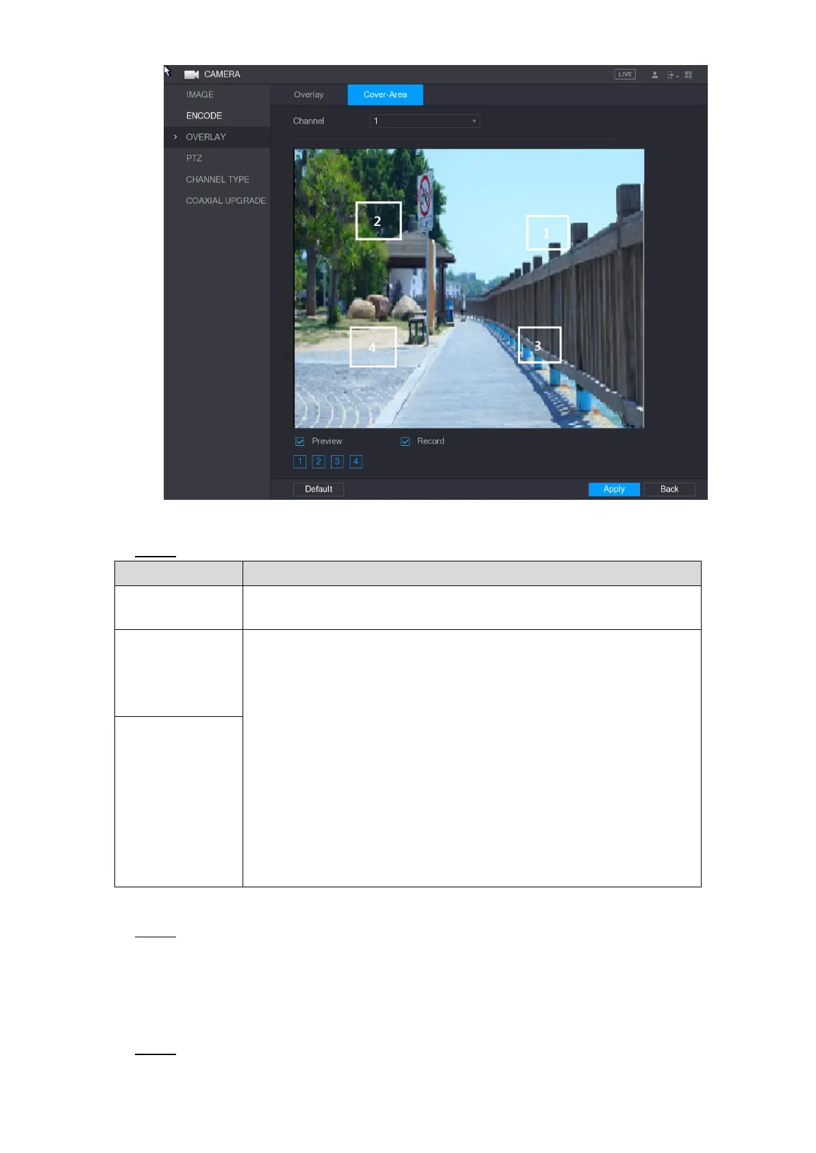 Configure the settings for the covered area parameters. See Table 5-27. Step 2