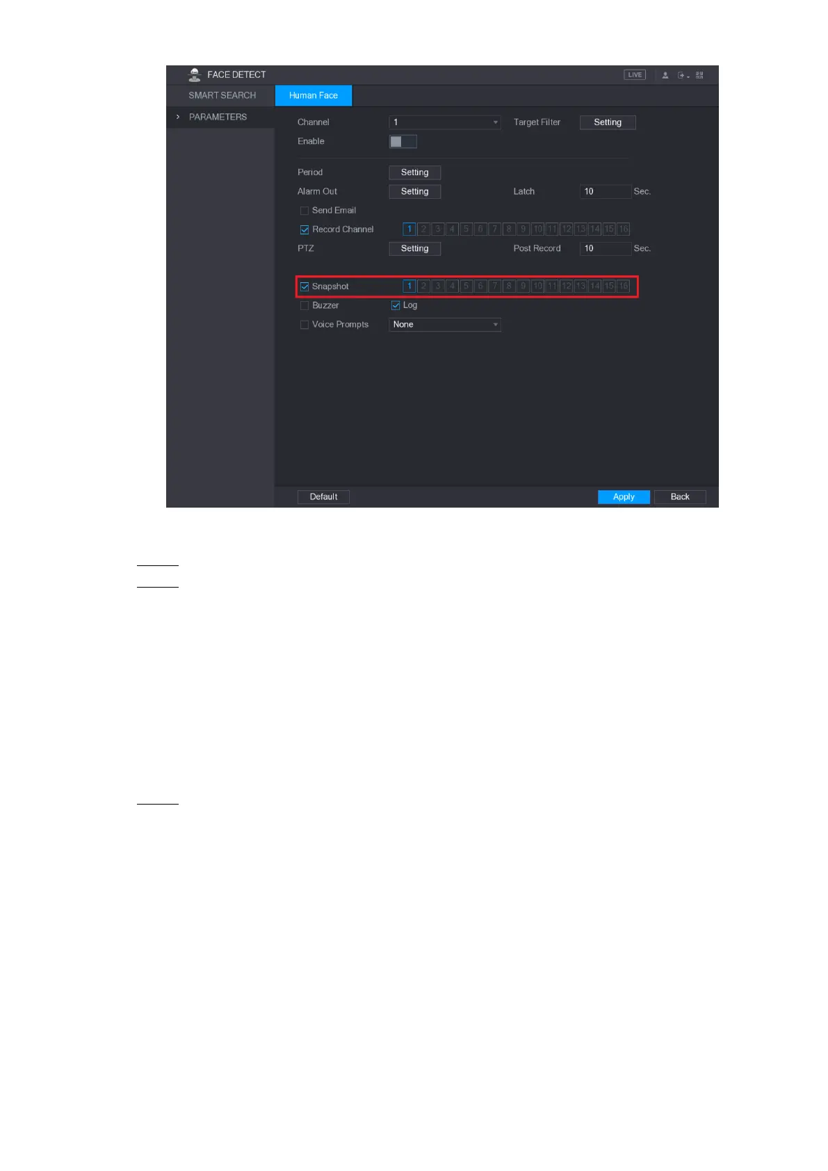 Select the Snapshot check box and select the corresponding channel. Step 4
