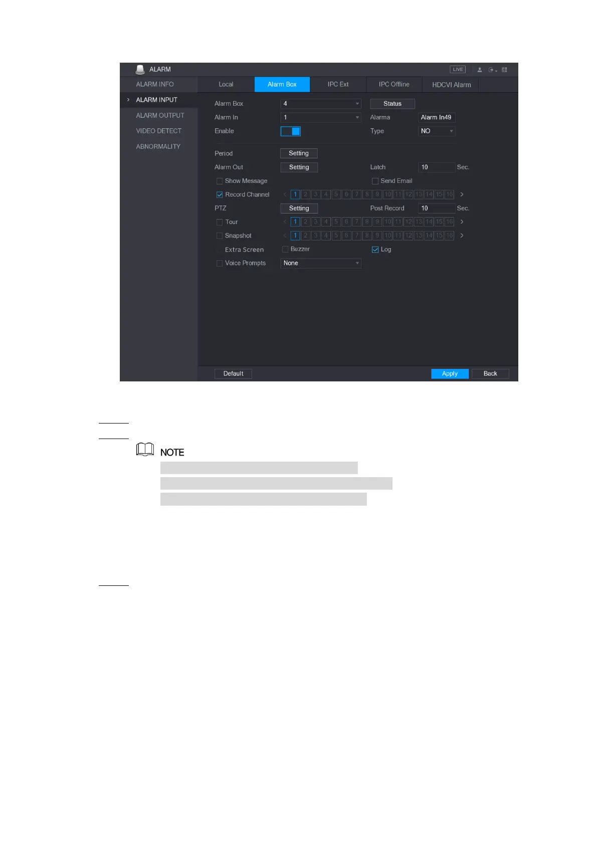Configure the alarm input settings from the external IPC. For details, see Table 5-35. Step 2