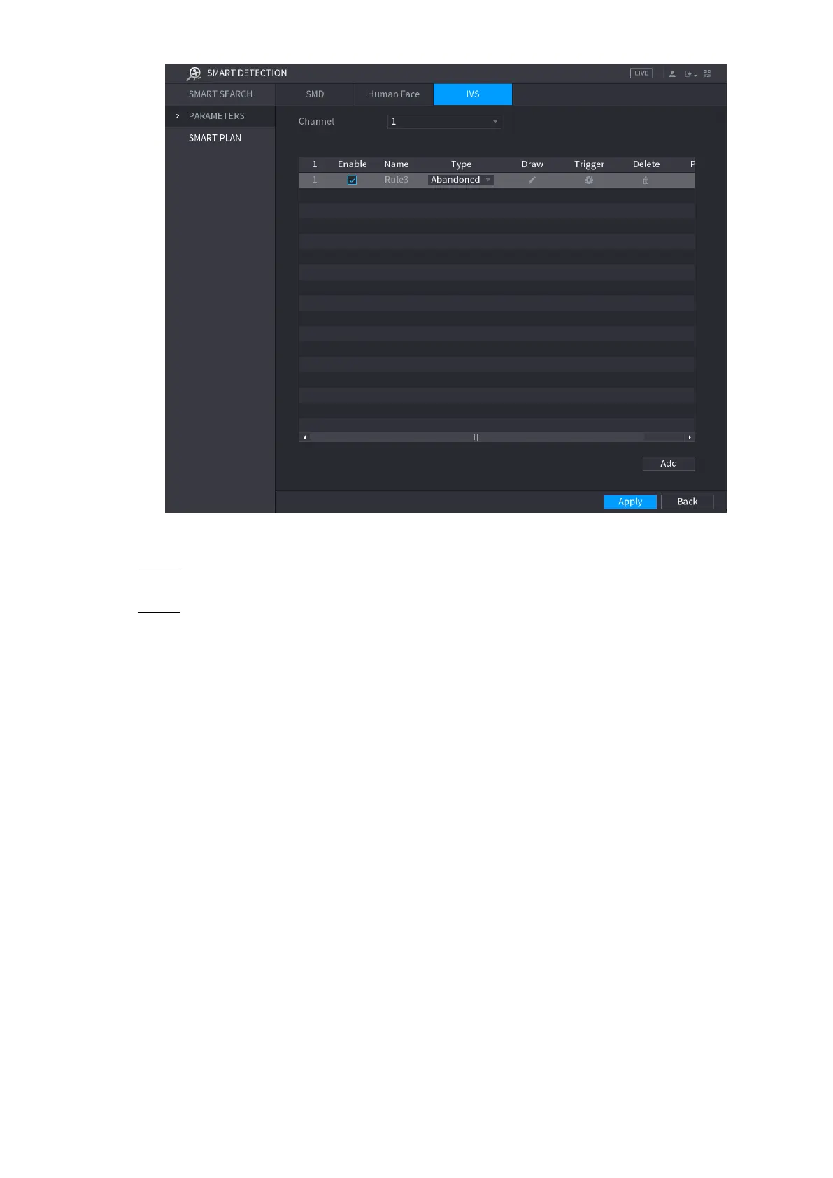 In the Channel list, select the channel number that you want to configure the IVS Step 2