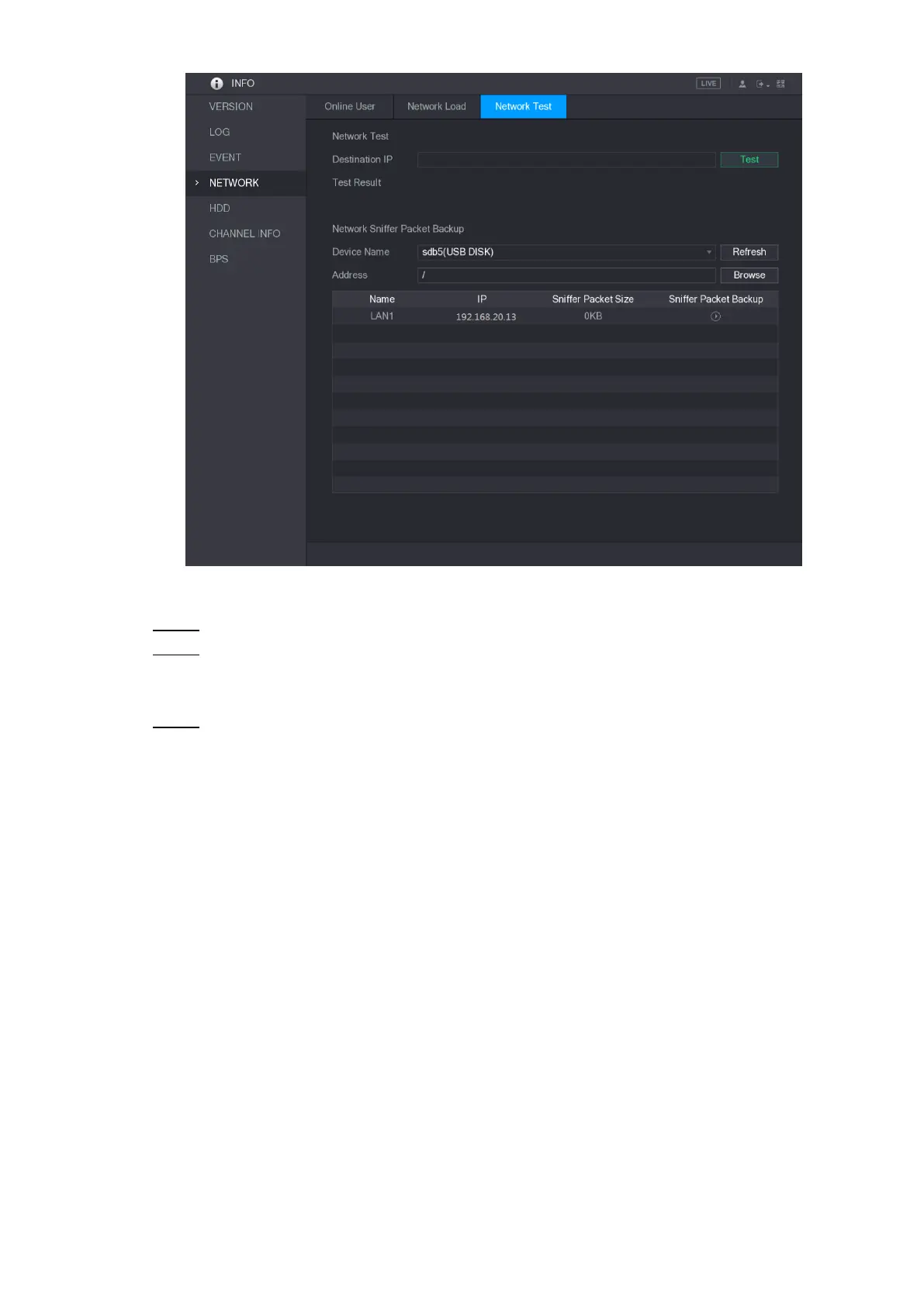 In the Network Sniffer Packet Backup area, click Browse. 1)