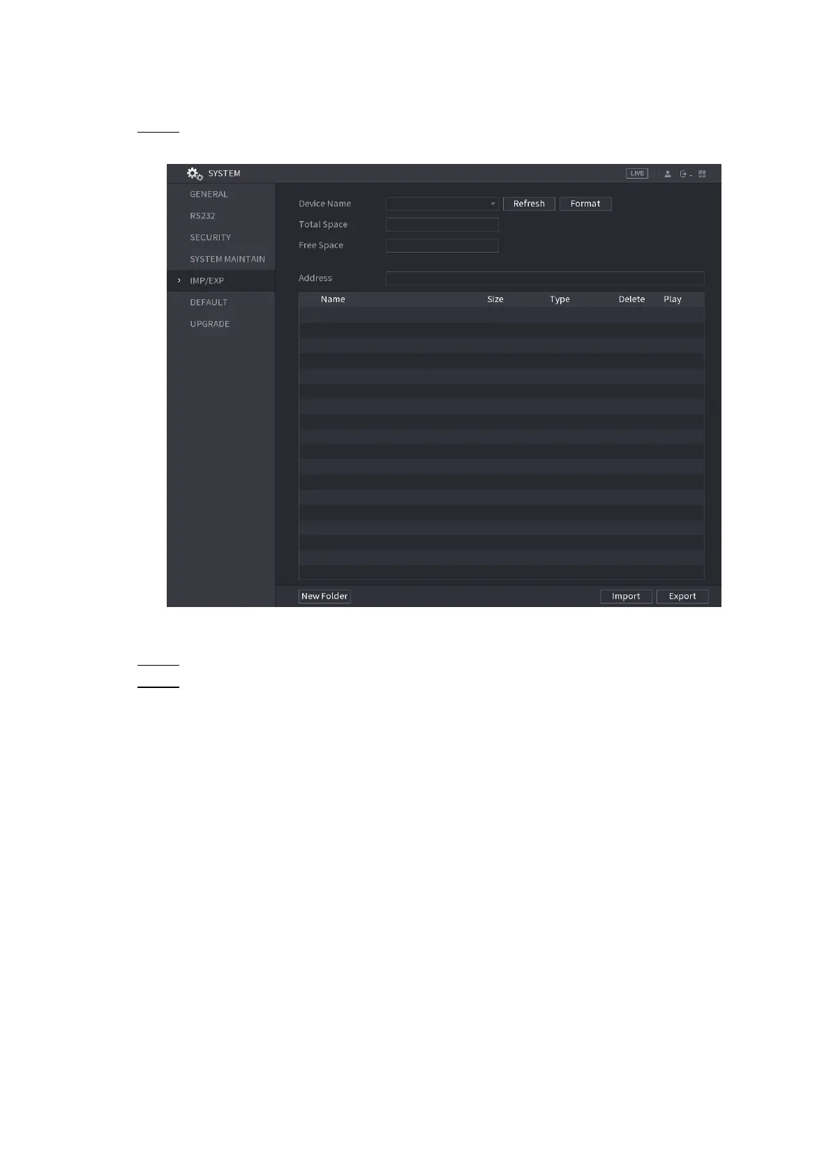 Select Main Menu > SYSTEM > IMP/EXP. Step 1
