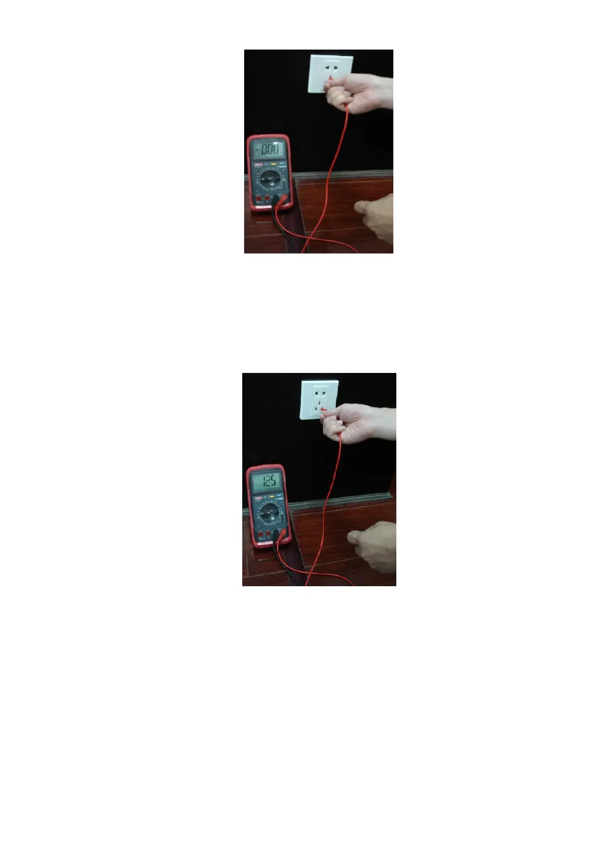 Turn the digital multimeter to 750V AC, use your one hand to hold the metal end, and then the