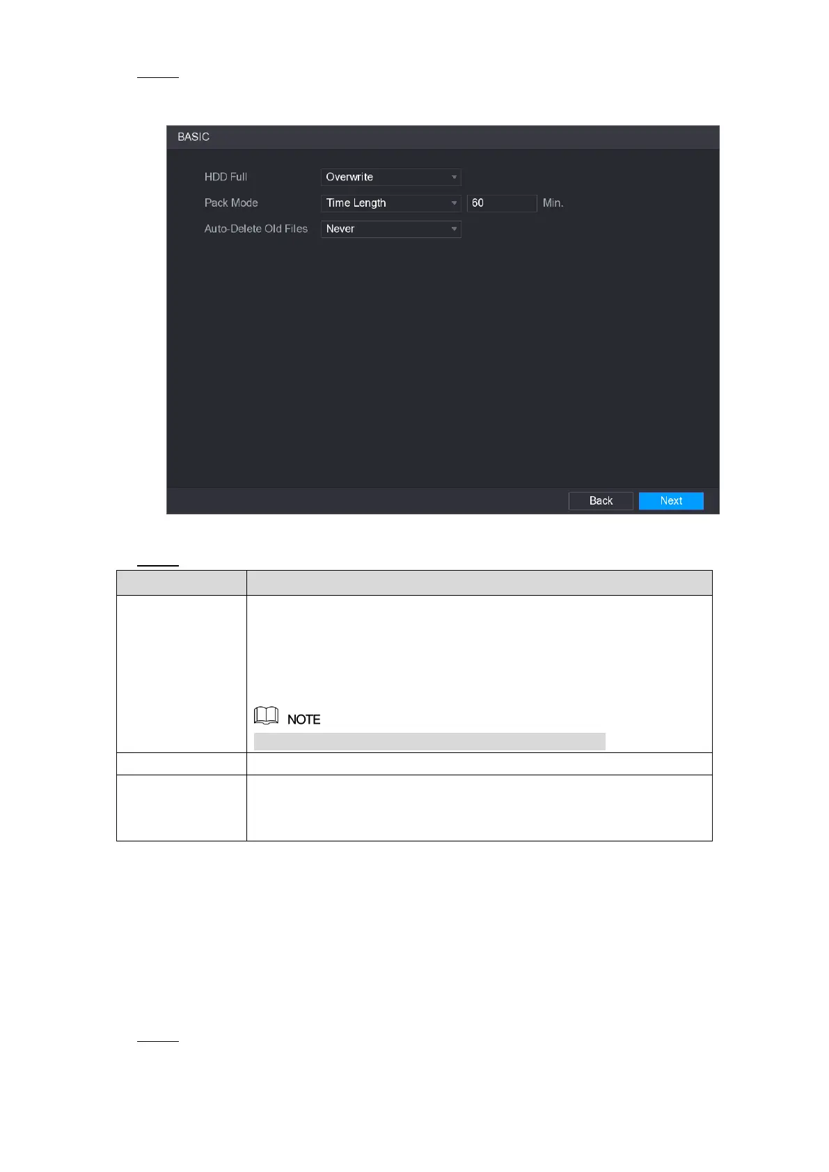 Configure the basic storage settings parameters. See Table 5-8. Step 2