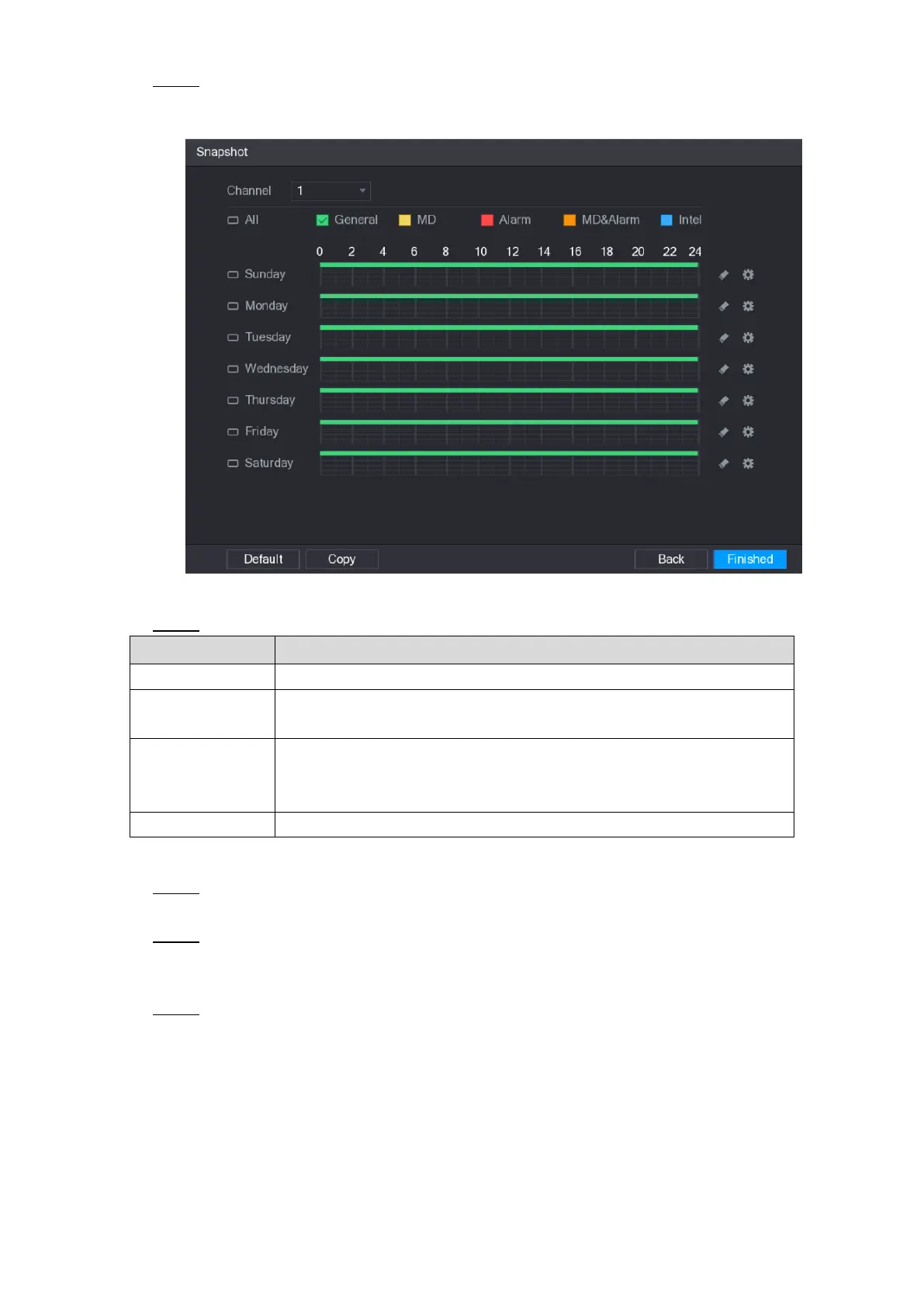 Configure the snapshot settings parameters. See Table 5-10. Step 2