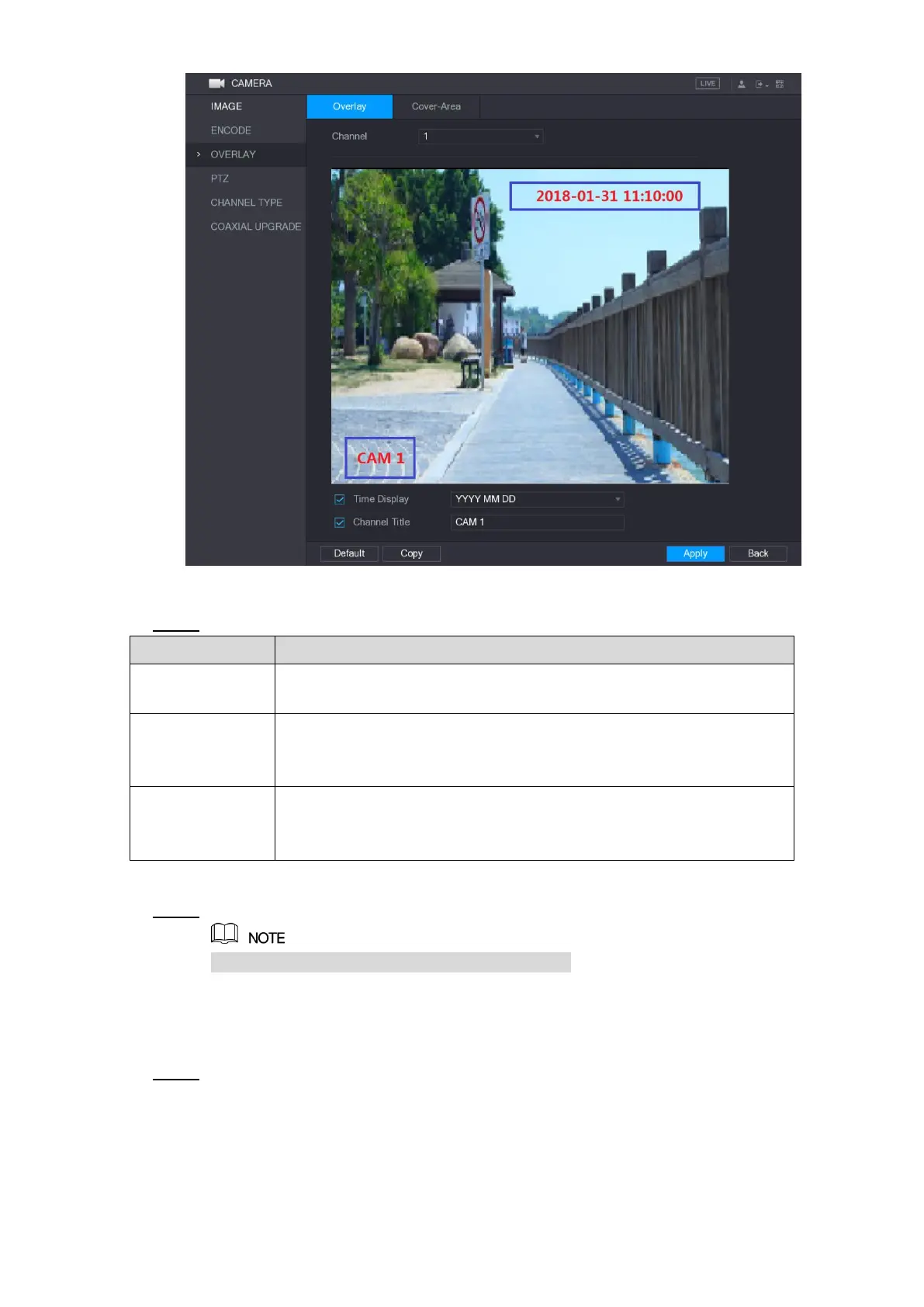 Configure the settings for the text overlay parameters. See Table 5-26. Step 2