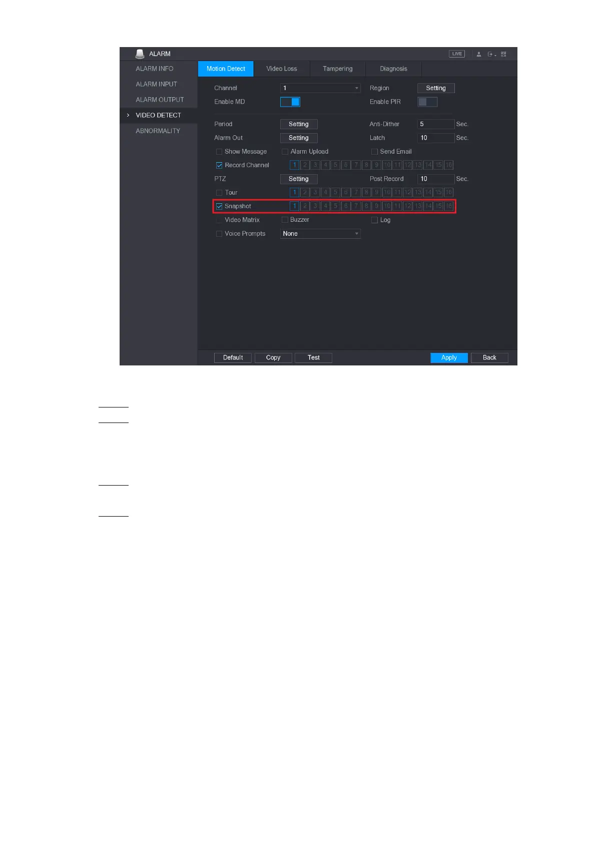 Select the Snapshot check box and select the corresponding channel. Step 4