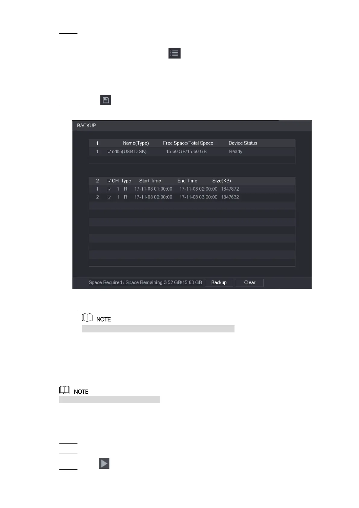 Recorded video file: Click , the File List area is displayed. Select the file(s)
