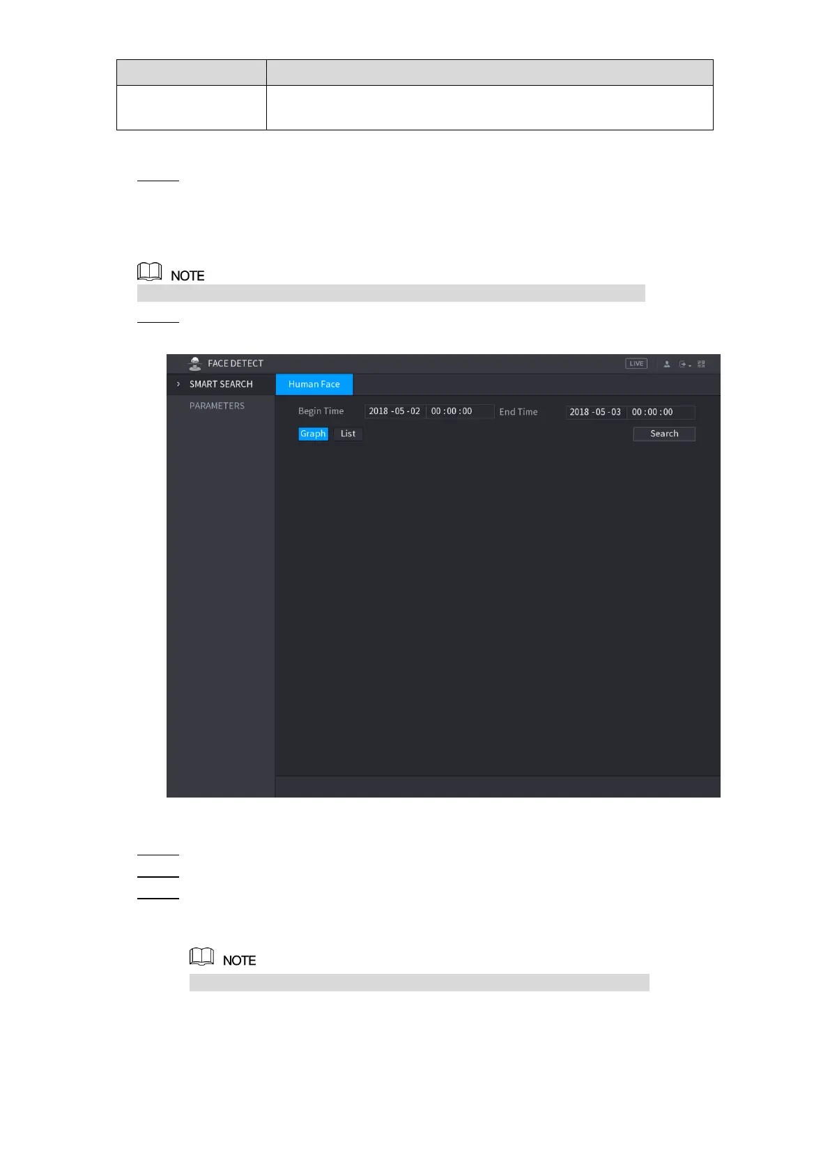 Select Main Menu > FACE DETECT > SMART SEARCH. Step 1
