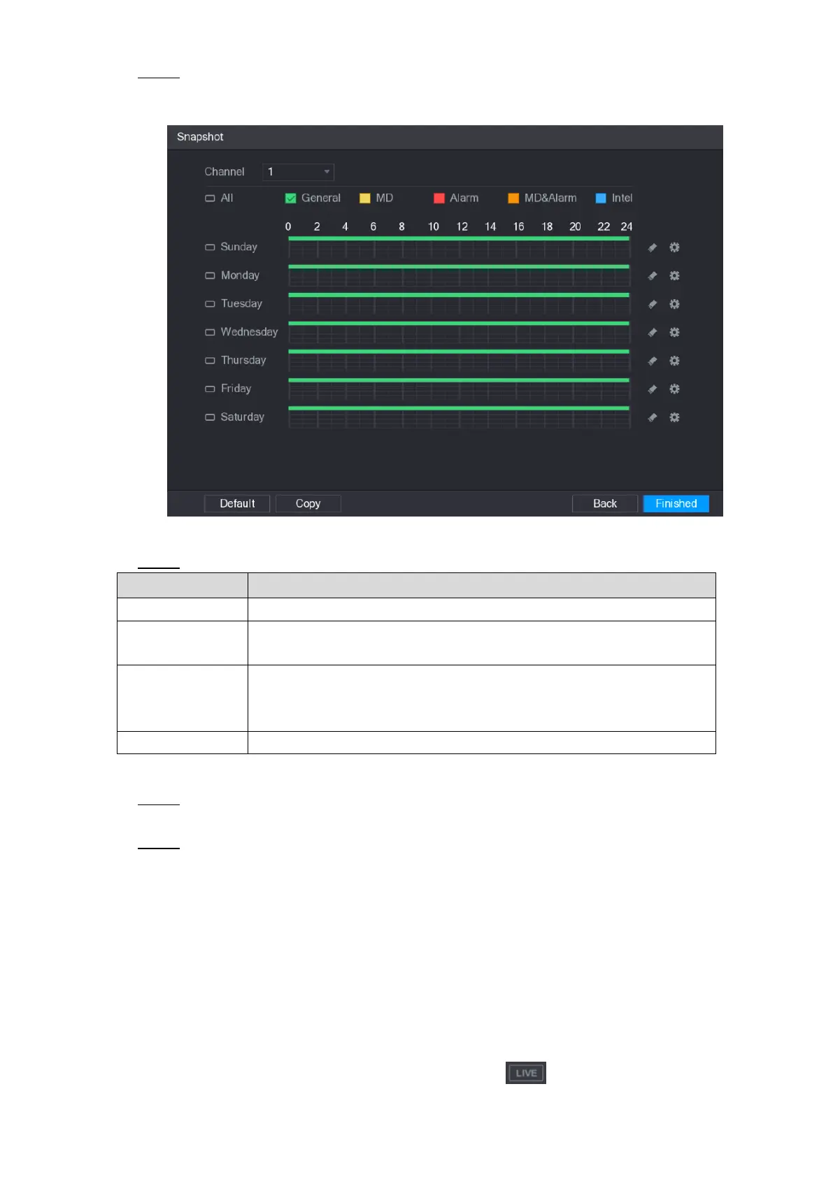 Configure the snapshot settings parameters. See Table 5-10. Step 2