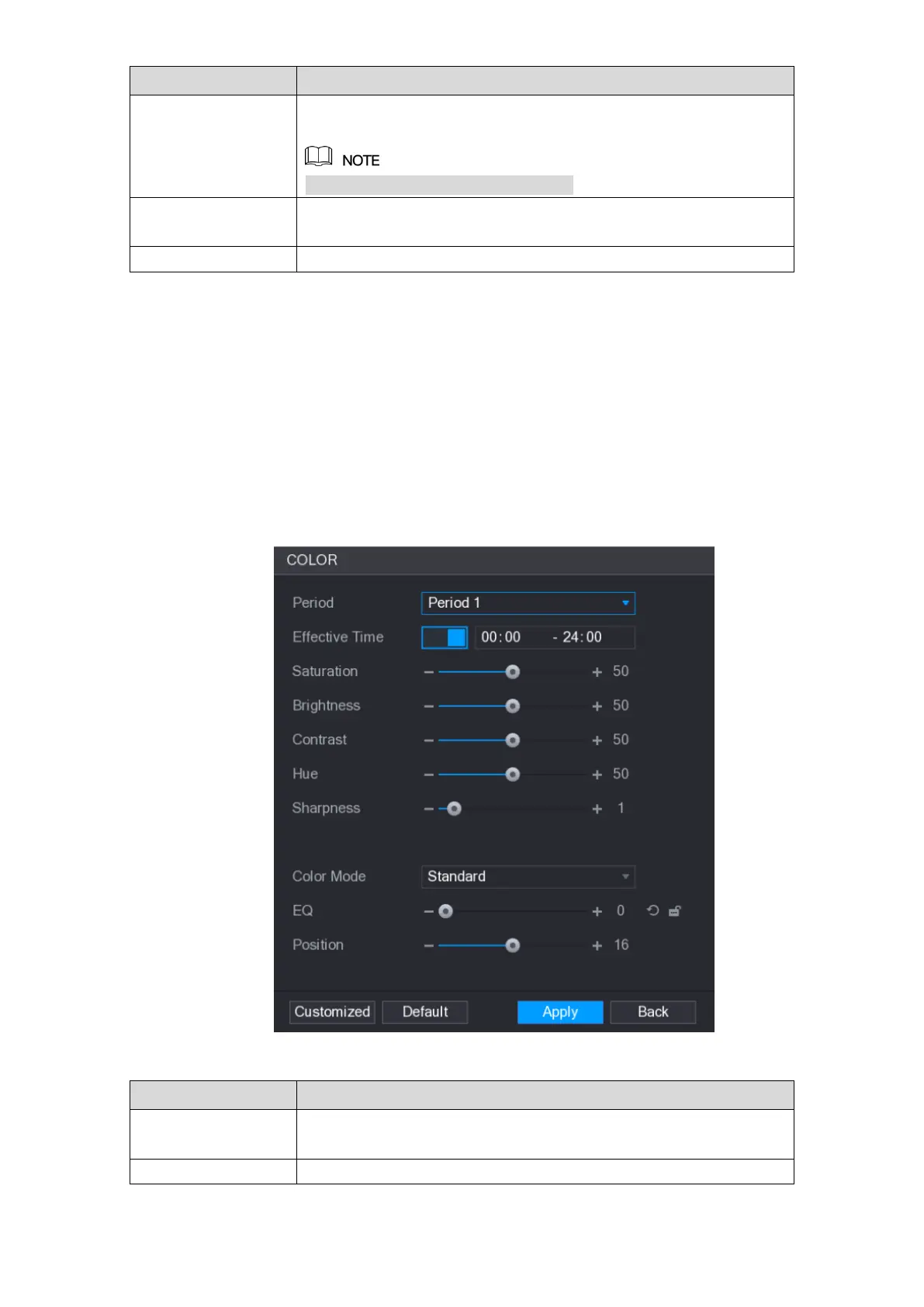 You can adjust the video image color effect such as sharpness, brightness, and contrast. The