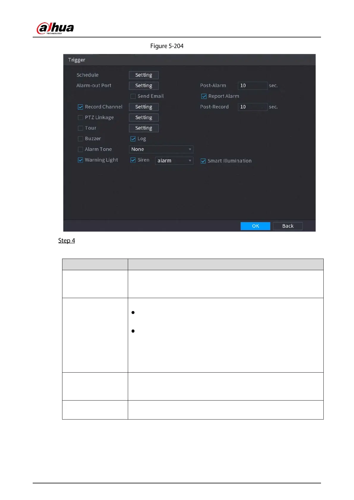 Ext. Alarm: Connect the alarm box to the Device and then enable it.
