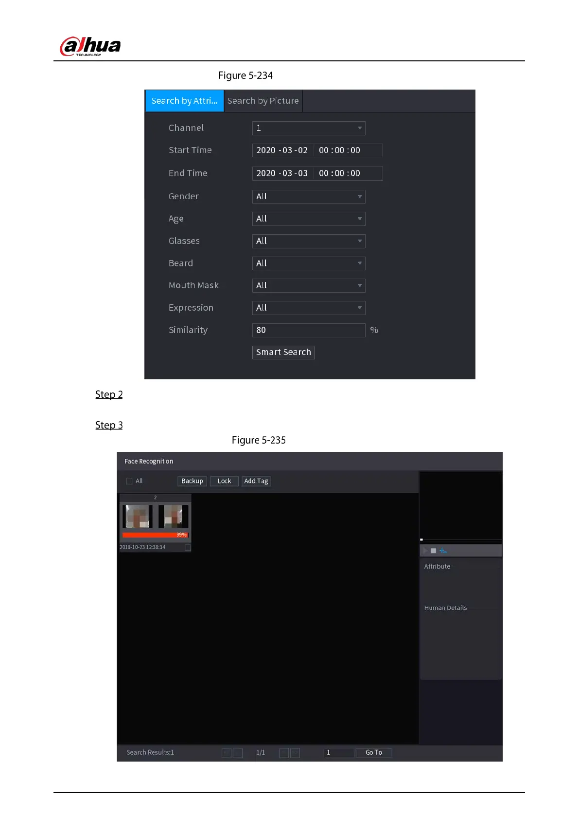 Select the channel and set the parameters such as start time, end time, gender, age, glasses,