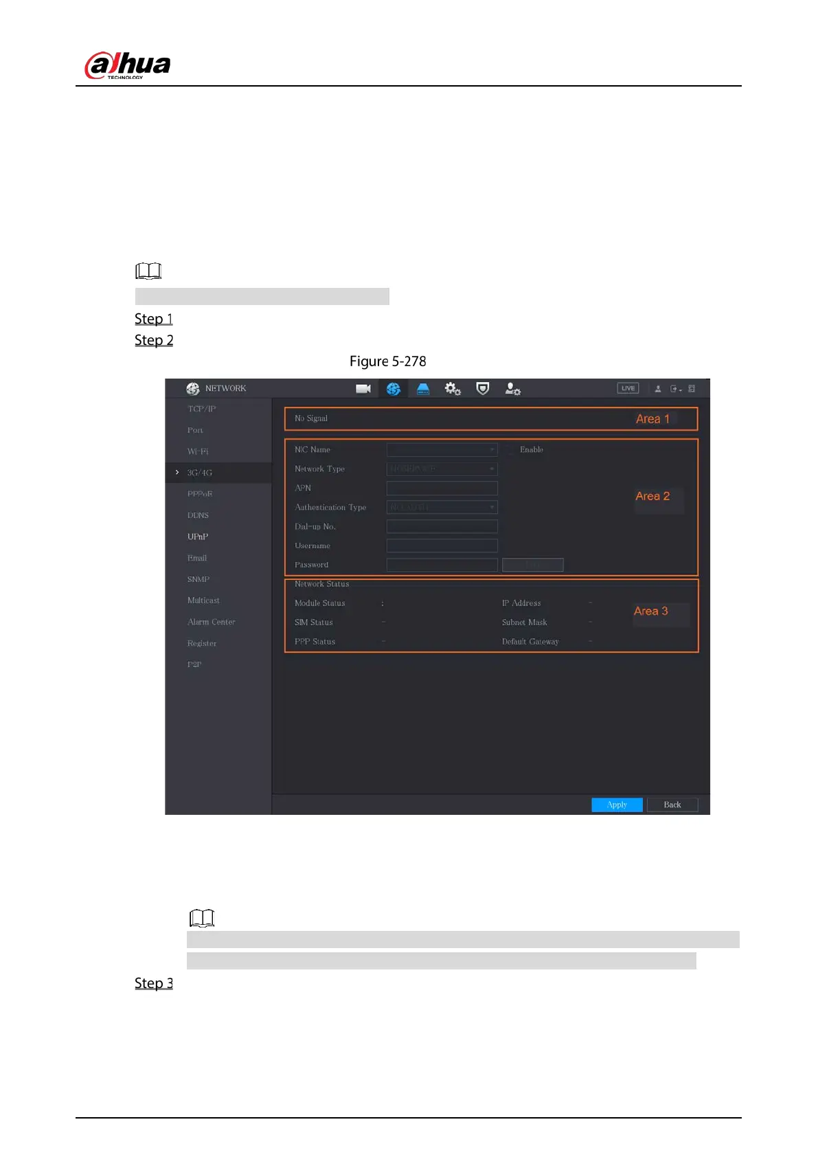 information of Area 1 and Area 3 will display only after the 3G/4G function is enabled.