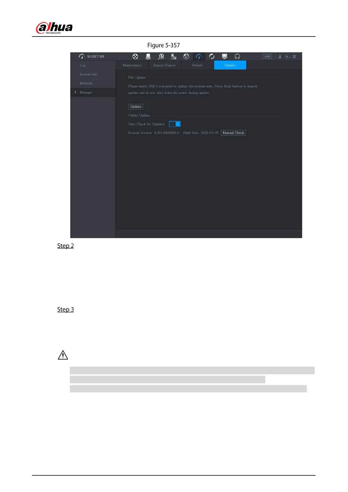 When starting the Device, the system automatically checks whether there is a USB storage device