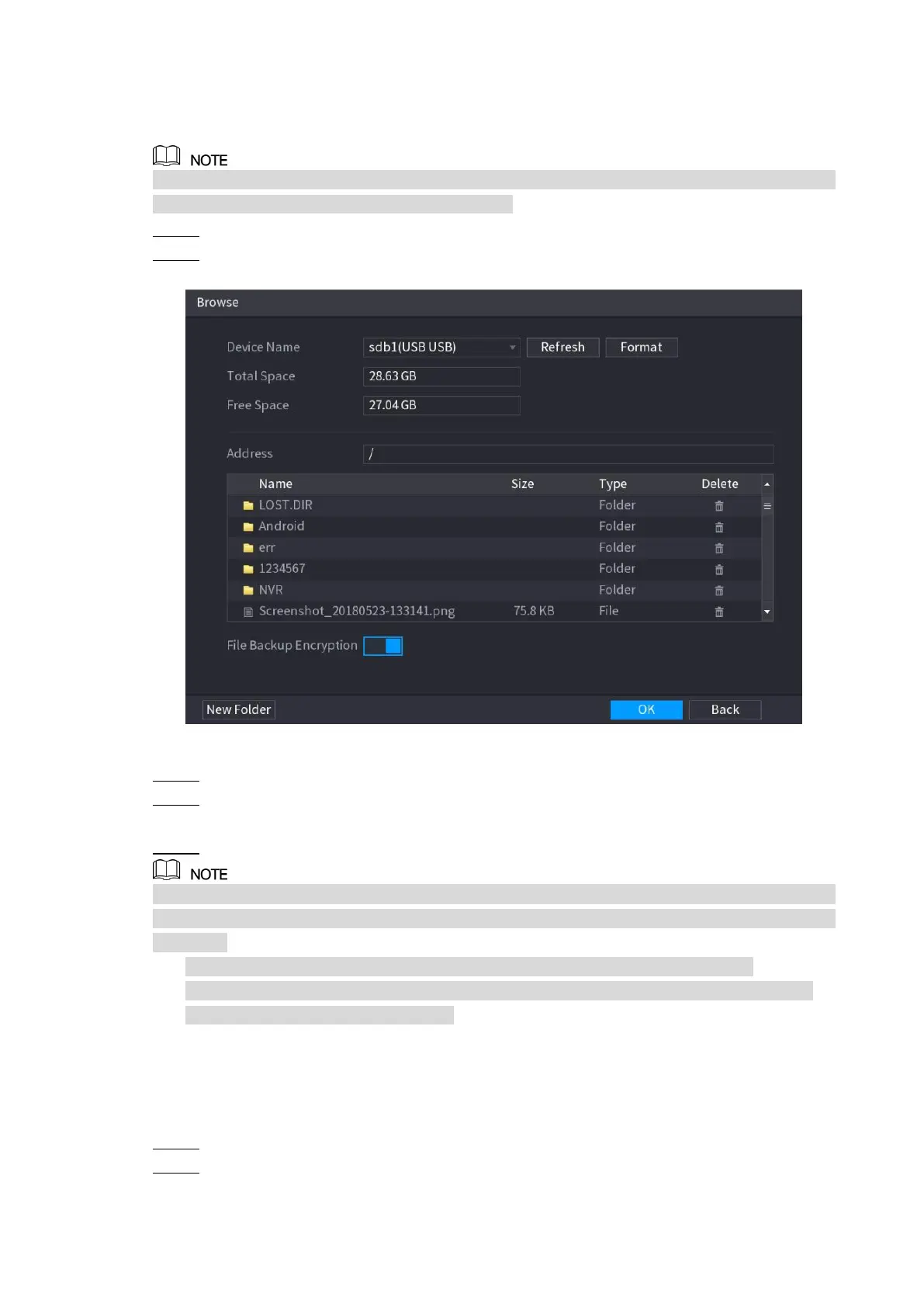 If you select the File Backup Encryption check box, the file format is .backup.